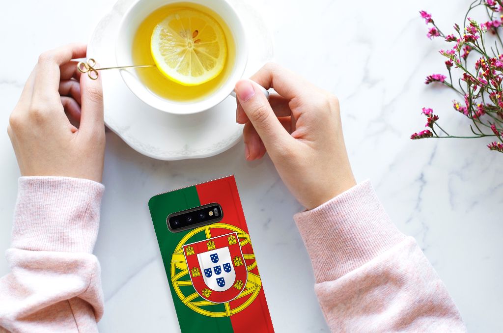 Vroeger werden vlaggen gebruikt om een boodschap over te brengen of een ridderorde aan te duiden. Tegenwoordig worden vlaggen gebruikt voor verschillende doeleinden. Een vlag kan worden gebruikt om te verwijzen naar een land, stad of beweging. Het staat symbool voor de nationaliteit van de mens. In onze collectie hebben wij alle Europese vlaggen opgenomen. De vlag wordt gedrukt op een Standcase voor de Samsung Galaxy S10 en heeft een vakje voor pasjes. Het fijne aan dit hoesje is dat je het horizontaal als standaard neer kunt zetten. Door de magneten aan de binnenkant wordt het hoesje afgesloten. Ook bieden wij de mogelijkheid om gratis je naam toe te voegen om het hoesje helemaal af te maken. Wil je meer vrijheid om het hoesje helemaal naar eigen wens te maken? Ga dan verder met ontwerpen in ons unieke ontwerpprogramma.