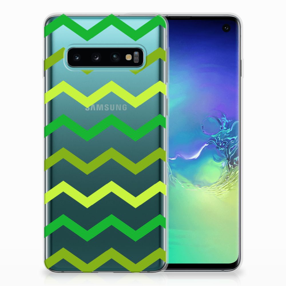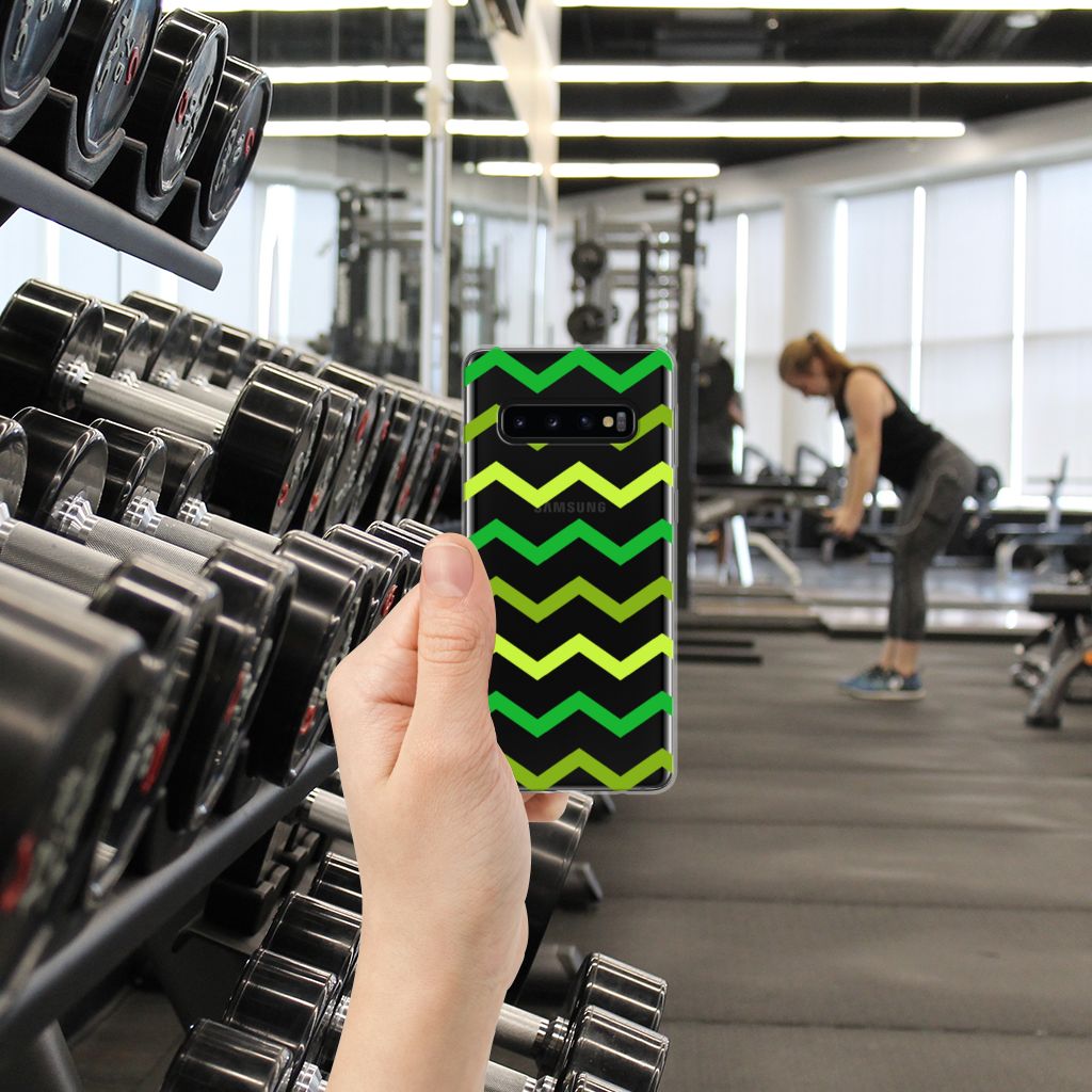 Dit zigzag groene design hoesje is speciaal ontworpen voor jou. We hebben bewust verschillende stijlen groen gebruikt, zodat er voldoende sprake is van variatie. Dit groene hoesje ziet er super strak uit. Dat kan ook niet anders als je weet dat onze designer zijn creativiteit heeft gebruikt. Hij schudt voortdurend nieuwe designs uit zijn mouw en dit zigzag groene hoesje is een van zijn fraaiste creaties. Een heel tof Samsung Galaxy S10 TPU bumper, al zeggen we het zelf. Valt dit Zigzag Groen design hoesje goed bij jou? Bestel het dan vandaag nog en je hebt het morgen in huis. Het design staat op een TPU case. Dit hoesje wordt alleen aan de bovenkant bedrukt en is zeer flexibel. De randen van het hoesje blijven transparant en worden niet bedrukt. Met dit hoesje past jouw telefoon altijd in je broekzak.