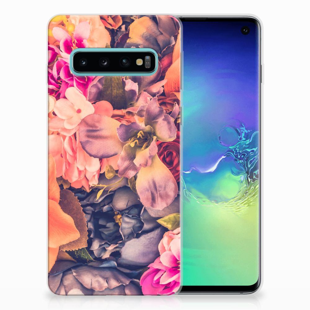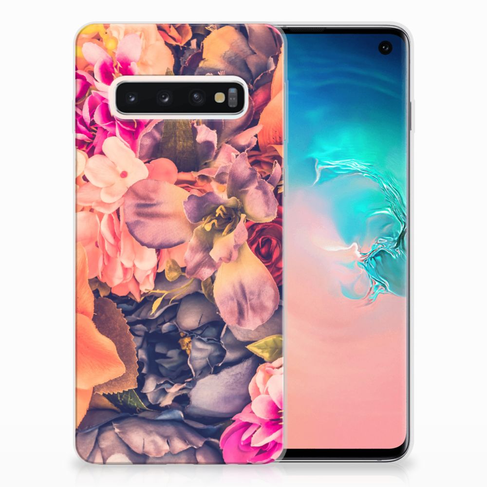 Dit Bosje Bloemen doet een mens en zijn smartphone goed. De oranje, paarse en roze bloemen op deze Samsung Galaxy S10 TPU Case geven jouw smartphone een zeer sierlijke uitstraling. Je wordt er ook meteen vrolijker van als je aan het appen, mailen of aan het bellen bent. Valt dan je telefoon op de grond, dan zal er dankzij de tpu case met oranje, paarse en roze bloemen geen schade ontstaan. Helemaal niet als je er een screenprotector bij hebt gekocht. Onze tpu cases met oranje, paarse en roze bloemen zien er zeer prettig uit en zijn heel praktisch, getuige onder meer de opstaande randen en het flexibele materiaal. Alleen de achterkant van de tpu case wordt bedrukt met oranje, paarse en roze bloemen. Op deze tpu case is het ook mogelijk je eigen ontwerp te zetten. In no time ontwerp je zelf een tpu case met daarop foto’s van jouw favoriete bloemen.