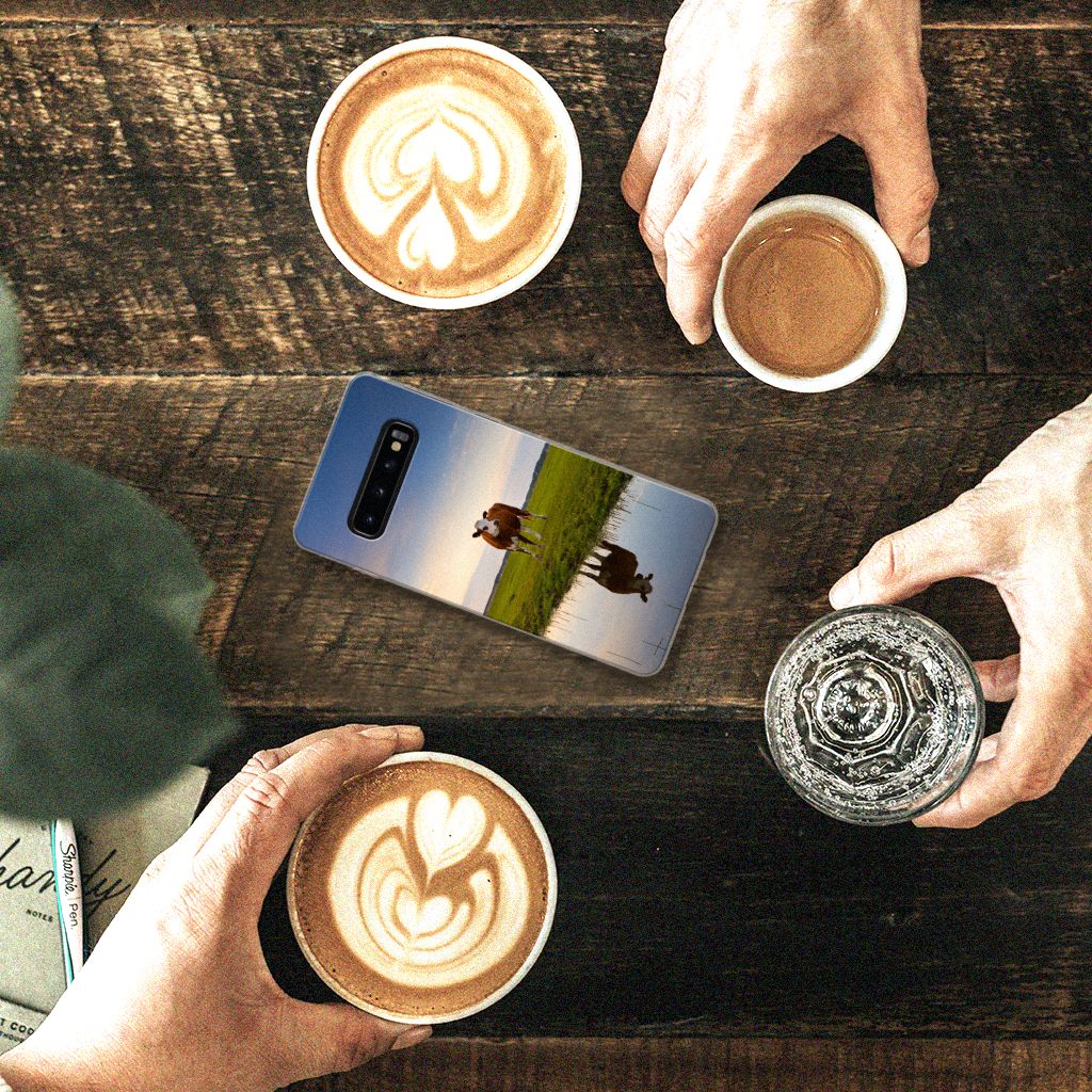 Het levert een idyllisch plaatje op, dit hoesje met een koe en ondergaande zon op de achtergrond. Door een koe buiten te laten lopen en grazen, hebben ze minder kans om ziek te worden. De Koe graast het liefst met soortgenoten, al zijn deze een stukje van de koe op de case verwijderd. Dit levert ook een mooi plaatje op, zoals je kunt zien op dit design hoesje. Dit tpu hoesje met koeien ziet er flexibel uit en is voorzien van alle uitsparingen. Een Samsung Galaxy S10 TPU Hoesje met koeien beschermt jouw smartphone vooral aan de achterkant en zijkanten. De zijkanten blijven transparant, de rest van het hoesje is bedrukt. Koeien herkauwen het liefst liggend, behalve wanneer het regent. Zo goed als grazen voelt voor koeien, zo duurzaam zal jouw smartphone blijven met dit design hoesje. Het TPU is schokabsorberend en niet te breken. De TPU case past altijd in je broekzak.