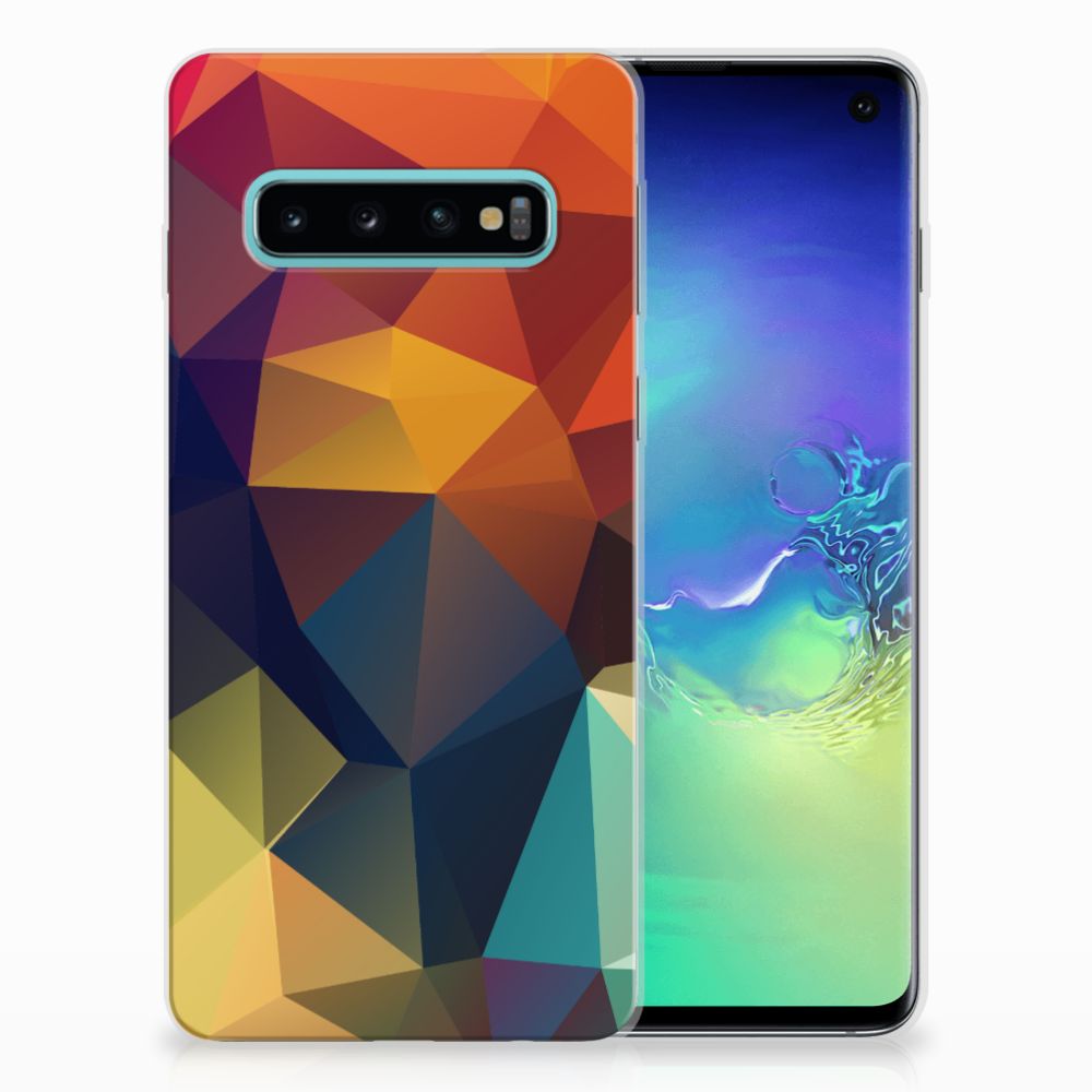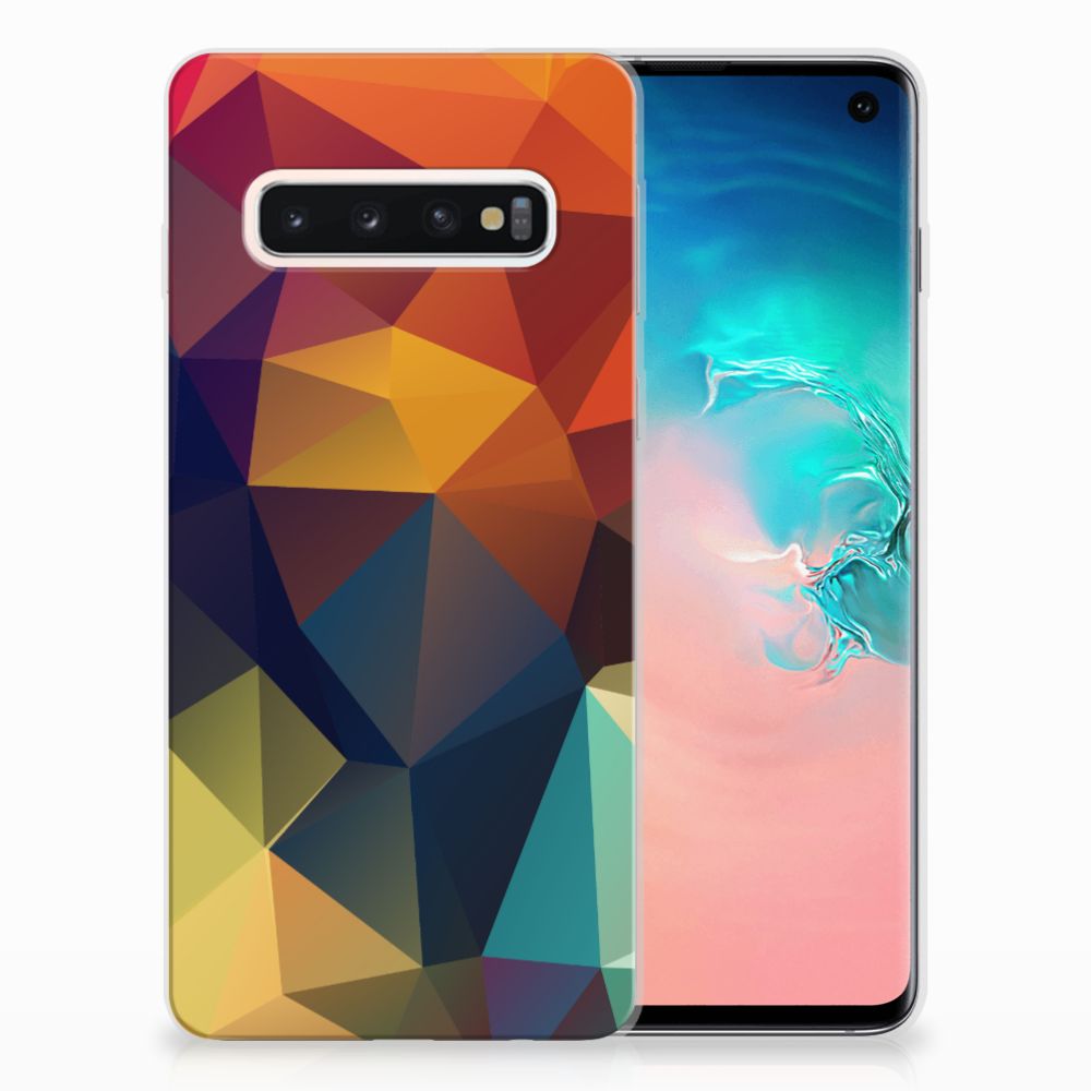Veelkleurige driehoeken die samen eindeloze asymmetrische patronen lijken te vormen. Het is het abstracte schouwspel dat op dit fraaie hoesje voor je Samsung Galaxy S10 direct de aandacht trekt noemen we voor het gemak trekt noemen we voor het gemak Polygon Color. De een ziet er een berglandschap in, de ander piramides. Wat zie jij erin? Zeker is in elk geval dat de aanblik van dit fascinerende ontwerp je niet snel gaat vervelen. Het kleurige spel van lijnen en vlakken blijft eindeloos boeien en geeft jouw TPU Hoesje een hippe en kunstzinnige uitstraling. De kracht die het lijnenspel uitstraalt, komt ook terug in het hoesje zelf. Dit hoesje wordt alleen aan de bovenkant bedrukt en is zeer flexibel. De randen van het hoesje blijven transparant. Wat wil je nog meer?
