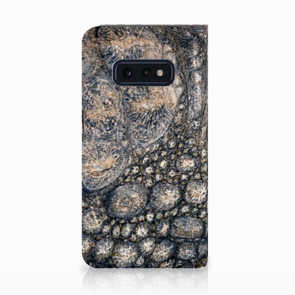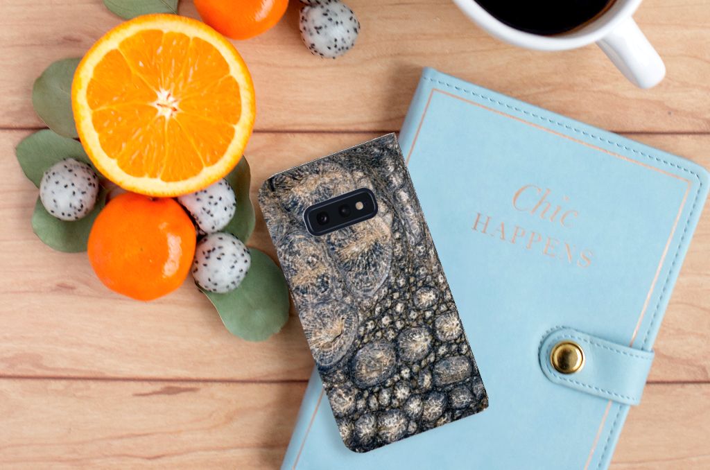 De dikke huid van een krokodil is zeer gevoelig. Met deze Samsung Galaxy S10e Hoesje maken met Krokodillenprint hoef je je geen zorgen te maken dat je smartphone schade oploopt. De krokodillenprint zetten we op een stand case op het moment dat jij je bestelling plaatst. Hierdoor krijgt jouw telefoon een print van krokodillen van zeer hoge kwaliteit. We bedrukken jouw gehele stand case met de vlekken van de krokodil. Je bankpas of creditcard kun je stoppen in het vakje aan de binnenkant van het telefoonhoesje met krokodillenprint. Met hun zintuigen kunnen krokodillen hitte, kou, aanraking, waterstroming en chemische stoffen detecteren. Jouw stand hoesje met krokodillenprint beschermt perfect tegen invloeden van buitenaf.