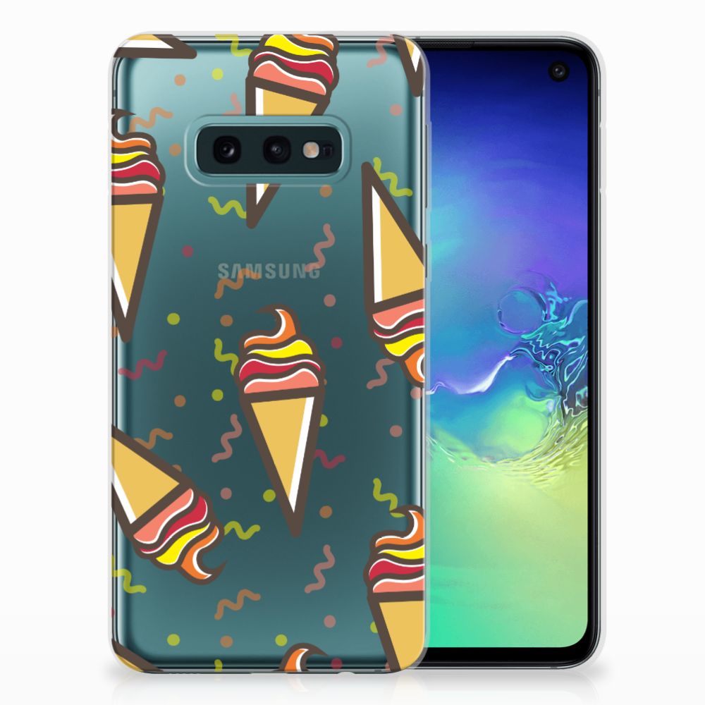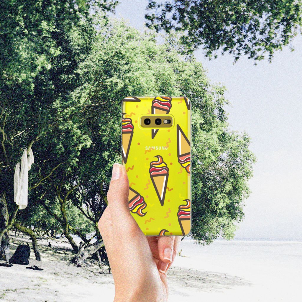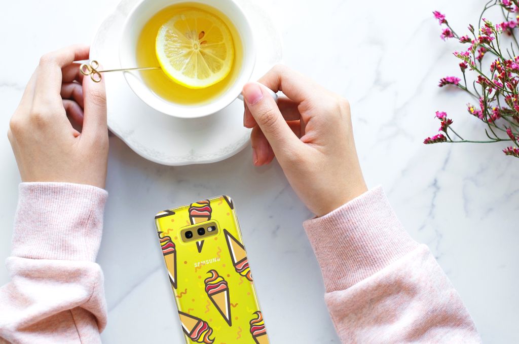 Een vrolijke Samsung Galaxy S10e Siliconen Case met daarop verschillende ijsjes. Als je daar geen zomers gevoel meer van krijgt, weten wij het ook niet meer. De zomer en ijsjes zijn onlosmakelijk met elkaar verbonden. Tijdens een bezoekje aan het strand mag een lekker ijsje bijvoorbeeld niet ontbreken. Een design hoesje met lekkere ijsjes print past daar natuurlijk ook ontzettend goed bij. Jouw telefoon is goed beschermd met een tpu case met Icecream design. De aankoop van deze case is een heerlijke investering, die zich gegarandeerd terugbetaalt. De bovenkant van dit hoesje wordt bedrukt met ijsjes, de zijkanten blijven doorzichtig. De case is gemaakt van schokabsorberend materiaal en past altijd in je broekzak. Onder alle weersomstandigheden zal deze TPU case perfect functioneren, ook in de zomer met een ijsje in je hand. Dit smaakvolle hoesje is zeer goedkoop te bestellen en wordt zeer snel bezorgd.