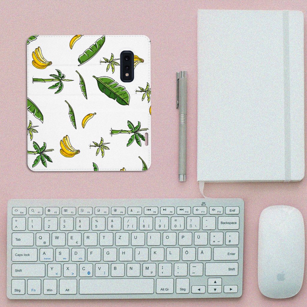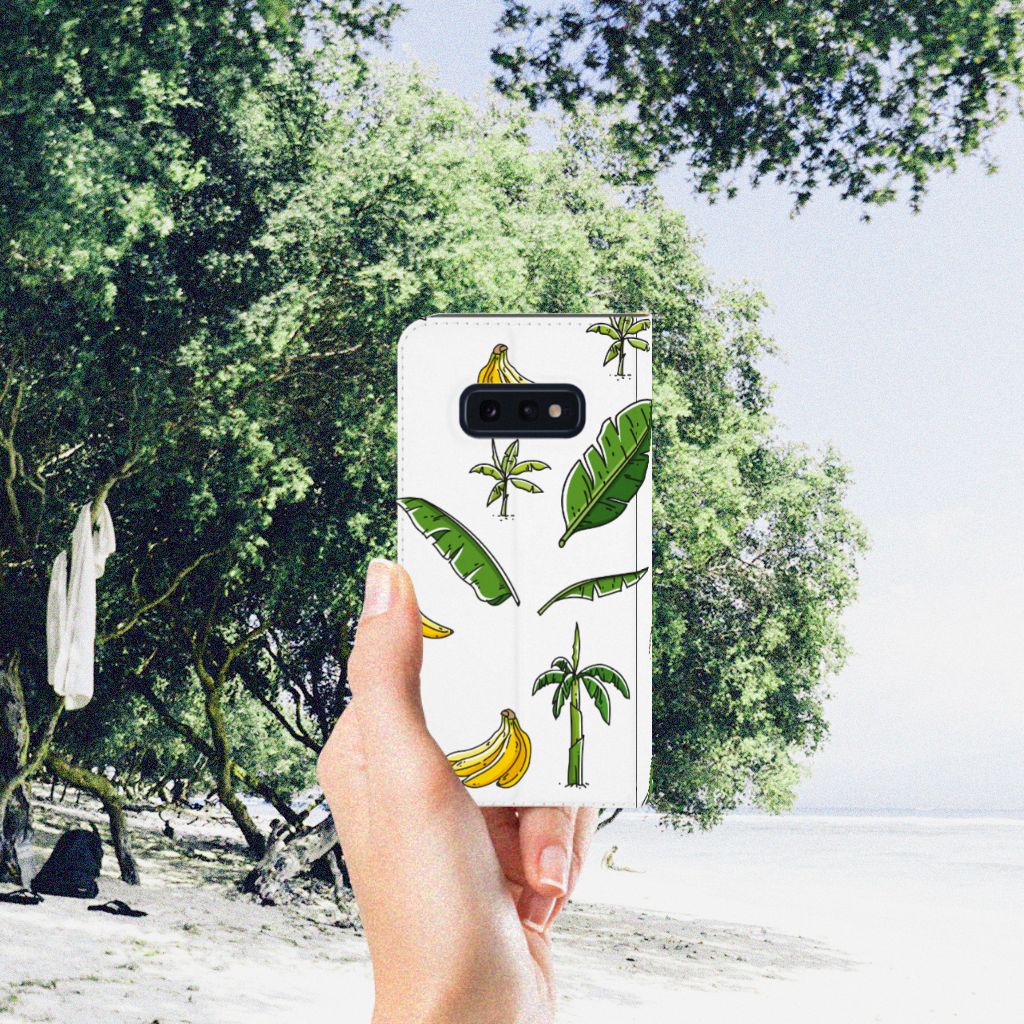 Heb jij al zin om op vakantie te gaan? Dat krijg je hoe dan ook als je één blik werpt op dit vrolijke hoesje voor je Samsung Galaxy S10e met Banana Tree design. Het fleurige tafereel van bananenbomen, bananenbladeren en bananen doet je gedachten afdwalen naar paradijselijke bountystranden met azuurblauwe zee en helderwitte zandpartijen. Kortom: dit hoesje is goed voor je humeur. Naast het luchtige design zijn daar nog meer redenen voor, want dankzij de stevige materialen weet je zeker dat dit Smart Cover je telefoon altijd optimaal beschermt. De solide hoes van PU-leer beschikt ook over een 1 pashouder en een speciale standaard. Het hoesje wordt afgesloten met een magneet aan de binnenzijde. De houder aan de binnenzijde is van TPU. Alle zijden worden bedrukt. Met dit hoesje breng je jezelf in zomerse sferen en gun je jezelf een krasvrije telefoon.