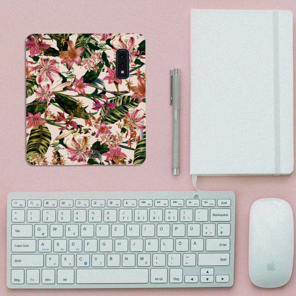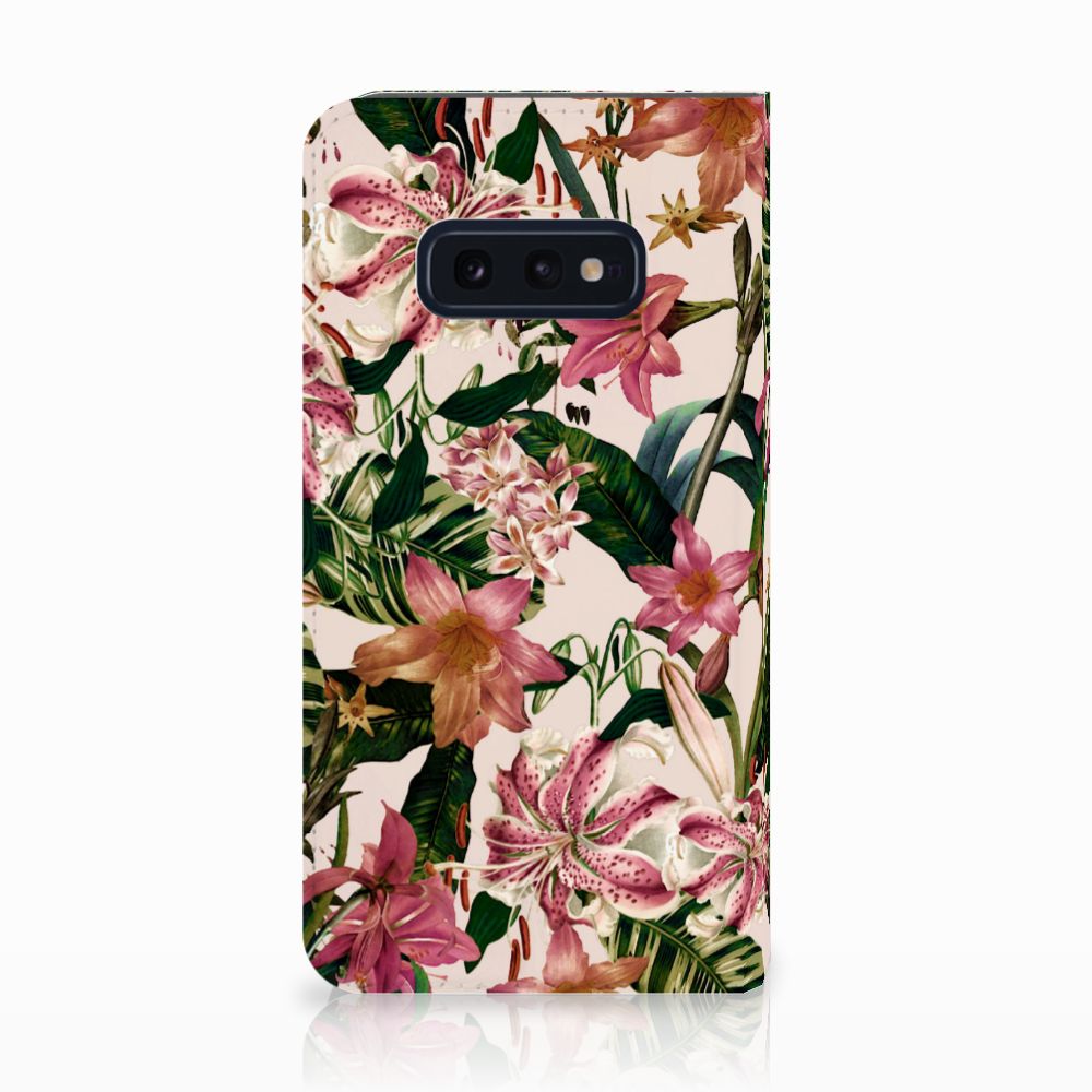 Dit Flowers design is een zegen voor de mens en zijn smartphone. De paarswitte bloemen en groene bladeren op deze Samsung Galaxy S10e Smart Cover geven jouw smartphone een zeer sierlijke uitstraling. Je krijgt er meteen een goed gevoel bij als je aan het appen, mailen of aan het bellen bent. Valt dan je telefoon op de grond, dan zal er dankzij de stand case met paarswitte bloemen en groene bladeren geen schade ontstaan. Onze stand cases met paarswitte bloemen en groene bladeren bieden de allerbeste bescherming en zijn heel praktisch, wat blijkt uit onder meer het vakje aan de binnenkant en de handige standaard waarmee je de smartphone rechtop op tafel neer kunt zetten. De paarswitte bloemen en groene bladeren komen op alle zijden van de case te staan. Op deze stand case van leer en TPU (houder aan de binnenkant) kun je in no time zelf foto’s van jouw favoriete bloemen zetten.
