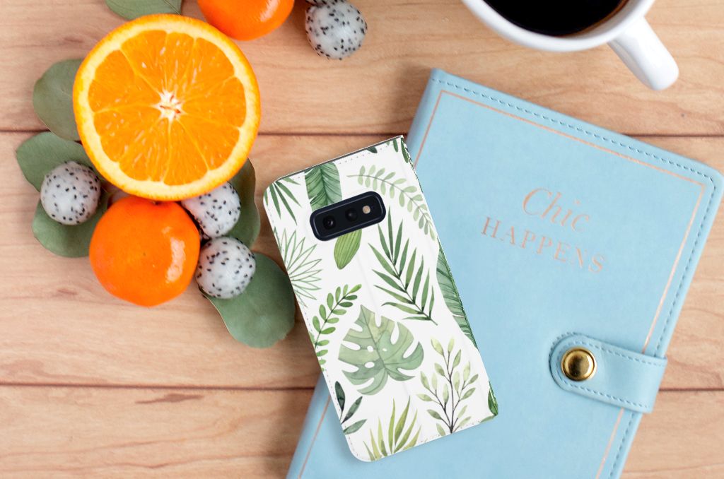 Je voelt je verbonden met de natuur als je kiest voor deze Samsung Galaxy S10e Smart Cover met print Leaves. De print bestaat uit verschillende groene bladeren en dit zorgt voor een fraai decoratief geheel. Met dit patroon van groene bladeren creëer je een frisse uitstraling voor jouw smartphone. Jij doet er verstandig aan om je telefoon te beschermen met dit design hoesje met groene bladeren, die staan op een stand case. Dit hoesje kenmerkt zich onder meer door het handige vakje aan de binnenzijde en de magnetische sluiting aan de binnenzijde. Voel jij jezelf gezond met een beeld van groene bladeren, dan is deze stand case met print een uitstekende optie. Het beschermt jouw telefoon aan alle zijden. Het TPU aan de binnenzijde klemt zich perfect om jouw smartphone. Kijk ook eens naar onze andere hoesjes met bladeren of misschien maak je zelf wel gewoon liefst je eigen hoesje met eigen foto’s van bladeren.