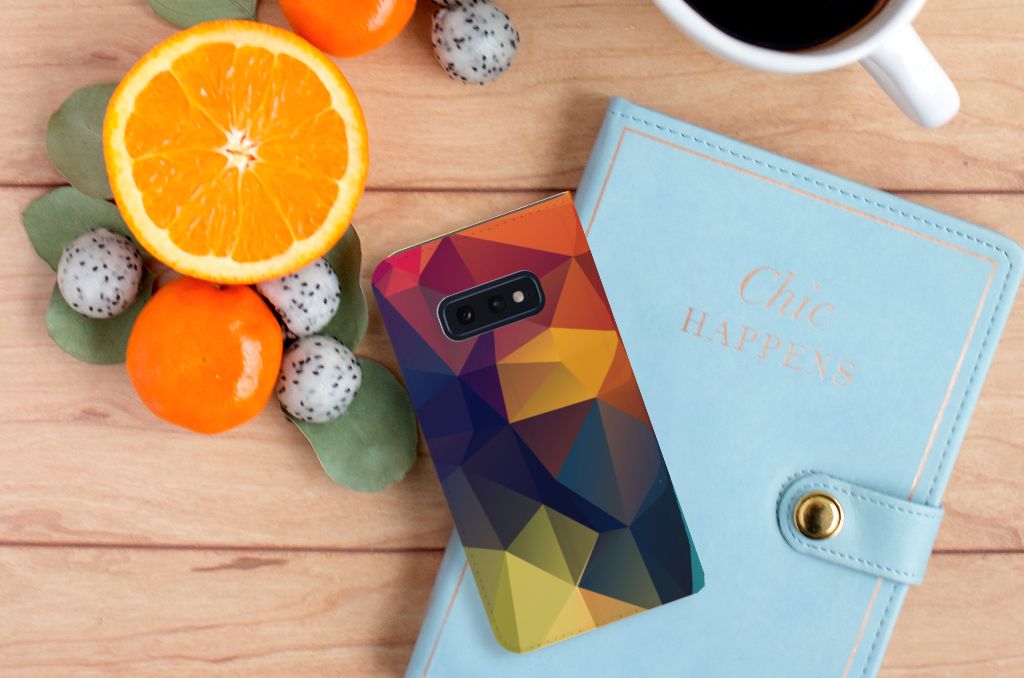 Veelkleurige driehoeken die samen eindeloze asymmetrische patronen lijken te vormen. Het is het abstracte schouwspel dat op dit fraaie hoesje voor je Samsung Galaxy S10e direct de aandacht trekt noemen we voor het gemak trekt noemen we voor het gemak Polygon Color. De een ziet er een berglandschap in, de ander piramides. Wat zie jij erin? Zeker is in elk geval dat de aanblik van dit fascinerende ontwerp je niet snel gaat vervelen. Het kleurige spel van lijnen en vlakken blijft eindeloos boeien en geeft jouw Stand Case een hippe en kunstzinnige uitstraling. De kracht die het lijnenspel uitstraalt, komt ook terug in het hoesje zelf. De solide hoes van PU-leer beschikt ook over een 1 pashouder en een speciale standaard. Het hoesje wordt afgesloten met een magneet aan de binnenzijde. De houder aan de binnenzijde is van TPU. Alle zijden worden bedrukt.