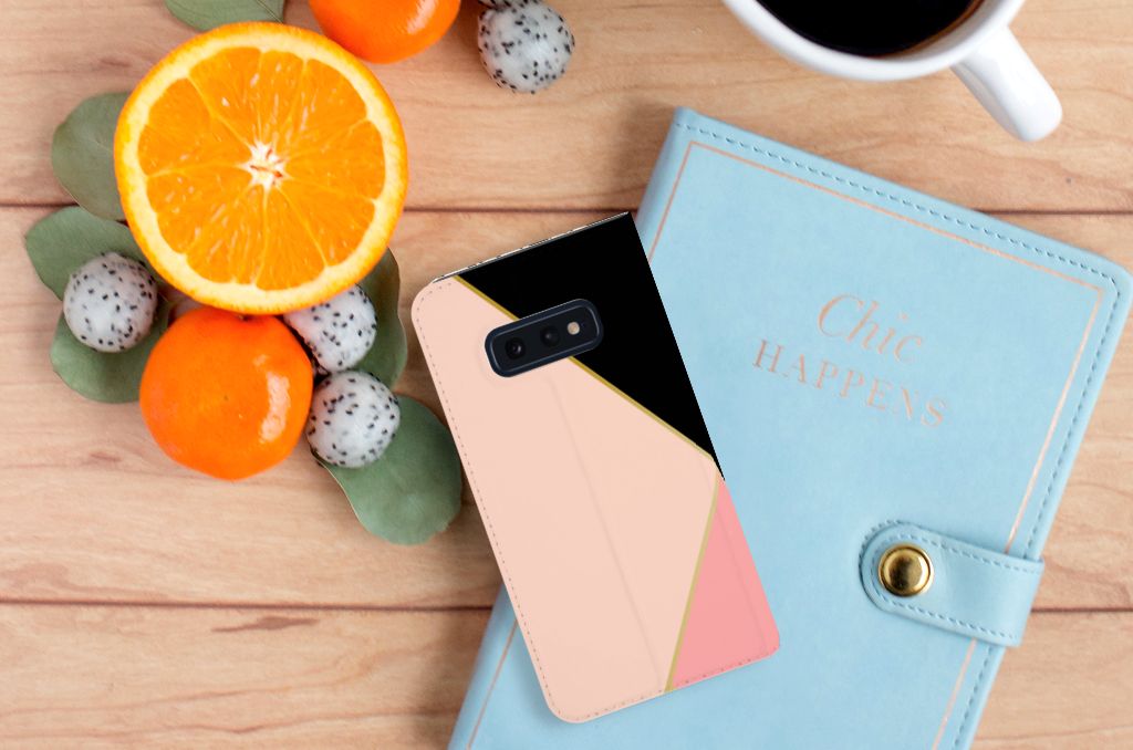 Samsung Galaxy S10e Print Stand Case Zwart Roze Vormen
