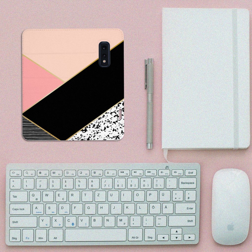 Aan design Standcase Samsung Galaxy S10e met mooie vormen en figuren geen gebrek in onze uitgebreide collectie. Wat dacht je van dit design stand case met Black Pink Shapes. Deze stand case met roze, zwarte en witte vlakken is zo’n beetje de veiligste case die er bestaat. Een Samsung Galaxy S10e Stand Case met print zorgt voor een volledige bescherming van je smartphone en wordt aan alle zijden bedrukt met roze, zwarte en witte vlakken. Wij adviseren om dit hoesje in combinatie met een screenprotector te gebruiken voor een langere levensduur van je telefoon.