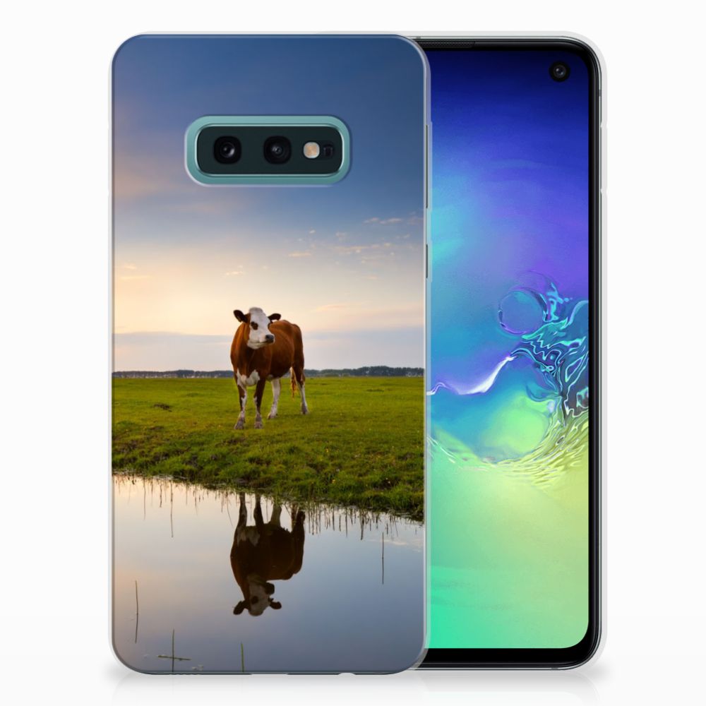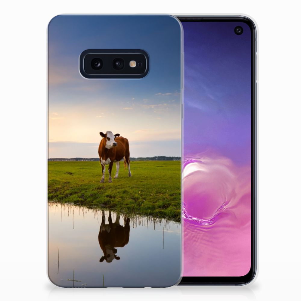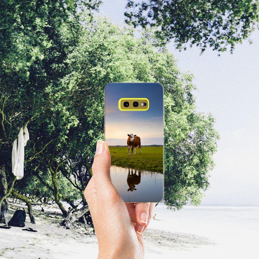 Het levert een idyllisch plaatje op, dit hoesje met een koe en ondergaande zon op de achtergrond. Door een koe buiten te laten lopen en grazen, hebben ze minder kans om ziek te worden. De Koe graast het liefst met soortgenoten, al zijn deze een stukje van de koe op de case verwijderd. Dit levert ook een mooi plaatje op, zoals je kunt zien op dit design hoesje. Dit tpu hoesje met koeien ziet er flexibel uit en is voorzien van alle uitsparingen. Een Samsung Galaxy S10e TPU Hoesje met koeien beschermt jouw smartphone vooral aan de achterkant en zijkanten. De zijkanten blijven transparant, de rest van het hoesje is bedrukt. Koeien herkauwen het liefst liggend, behalve wanneer het regent. Zo goed als grazen voelt voor koeien, zo duurzaam zal jouw smartphone blijven met dit design hoesje. Het TPU is schokabsorberend en niet te breken. De TPU case past altijd in je broekzak.