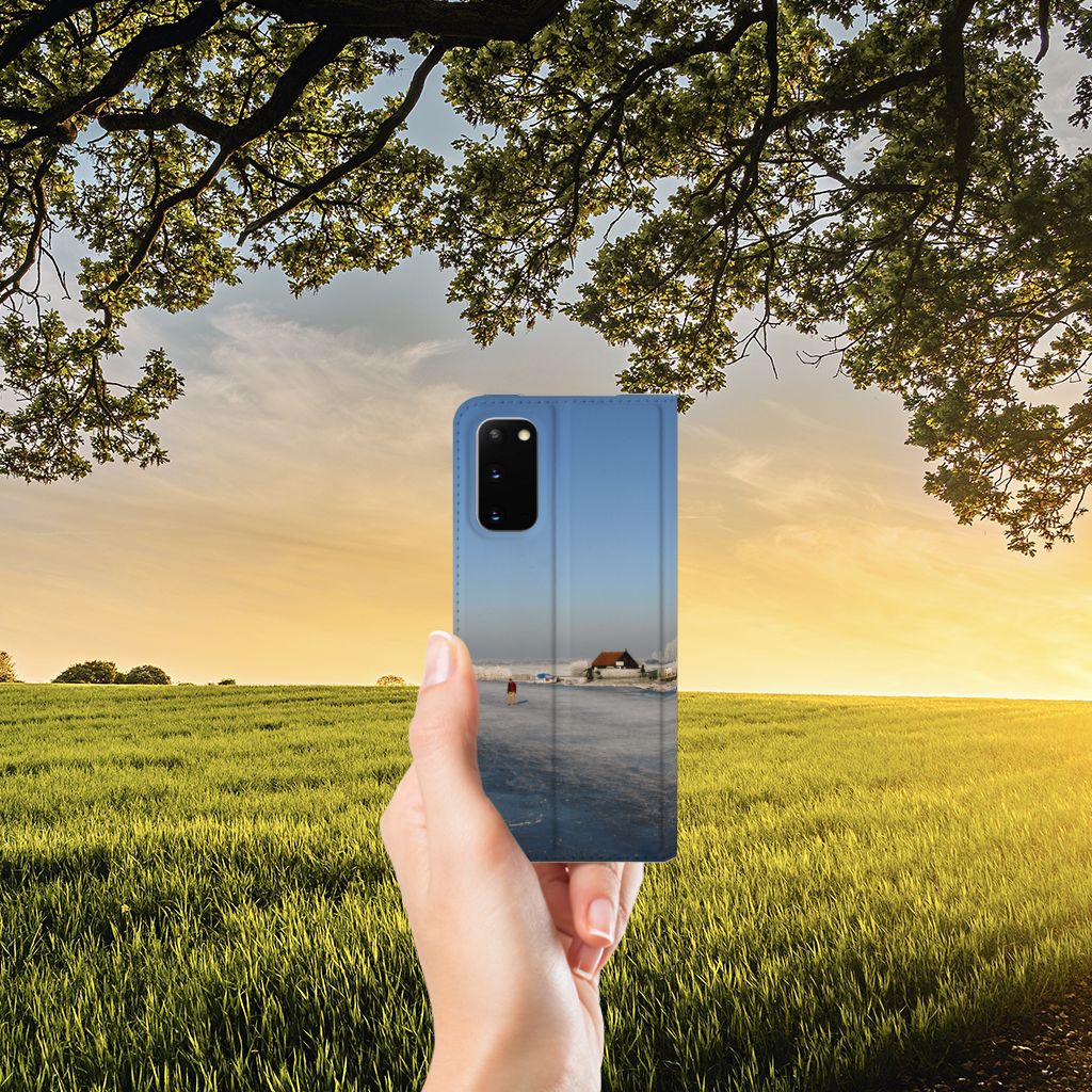 Deze mooie Samsung Galaxy S20 Book Cover met schaatsers is een typisch Hollands product. Schaatsen is een van de oudste Nederlandse volkssporten en wordt van jongs af aan geleerd. Hoewel schaatsen ook in andere landen van het noordelijk halfrond in trek is, met name in Scandinavië (Zweden, Finland, Noorwegen), blinken Nederlanders er pas echt in uit. Mocht jij met dit hoesje met schaatsers in het buitenland aankomen zetten, dan is het meteen duidelijk waar je vandaan komt. Deze stand case is perfect op maat gemaakt en heeft een vakje voor een pasje of briefgeld. Daarnaast is de magneet aan de binnenkant zeer handig. Alle zijden van de case worden bedrukt met schaatsers en de houder aan de binnenzijde is van tpu. Dit is erg flexibel materiaal. De case heeft ook een standaard.