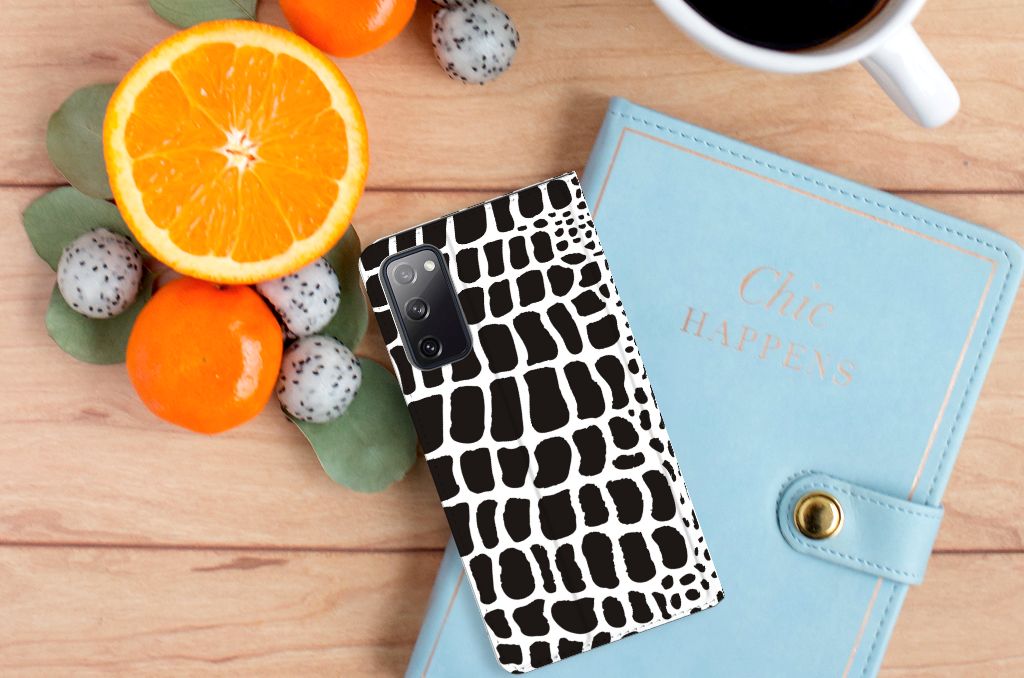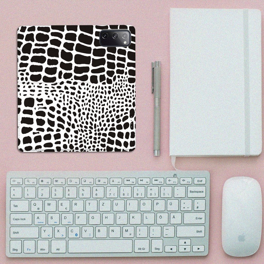 Deze stand case met zwarte en witte Slangenprint kunnen wij zeer exclusief noemen. Zeker als je er nog een bijzondere tekst van jezelf aan toevoegt, zoals je eigen naam in een sierletter. Jouw stand case krijgt dan een persoonlijke uitstraling, net nog een beetje specialer dan dit hoesje met zwarte en witte slangenprint. Wat niets afdoet van de exclusiviteit van deze stand case met zwarte en witte slangenprint. Ben jij toe aan een stoer en opvallend Samsung Galaxy S20 FE Hoesje maken? Pak dan dit design met print van slangenhuid als basis. Het stand hoesje met zwarte en witte slangenprint is van PU-leer (buitenzijde) en TPU (binnenzijde) en beschikt over een houder en een standaard. Verder is dit stand hoesje met slangenprint voorzien van een magnetische sluiting aan de binnenkant. Jij bent ervan verzekerd dat jouw smartphone tegen een stootje kan met dit stand hoesje met zwarte en witte slangenprint.
