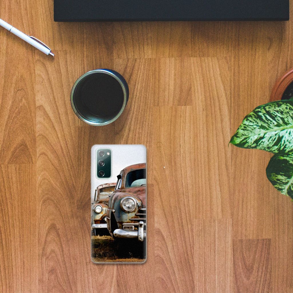 Autoliefhebbers met een voorkeur voor vintage zullen in hun nopjes zijn met dit design hoesje. We hebben een boekhoesje met print van Vintage Auto speciaal op maat gemaakt voor jouw smartphone. Door de achtergrond van dit hoesje krijgt de case met vintage auto’s echt een mooie retro look. Een Samsung Galaxy S20 FE Siliconen Hoesje met foto is een zeer flexibel hoesje. Dit komt onder andere door het elastische en onbreekbare materiaal waarvan de hoes is gemaakt. Verder is de case zeer praktisch. Wat denk je bijvoorbeeld van de opstaande randen aan de voorkant. Verder beschikt de case ook nog eens over alle noodzakelijke uitsparingen. Een TPU case wordt alleen aan de bovenkant bedrukt. De randen blijven volledig doorzichtig.