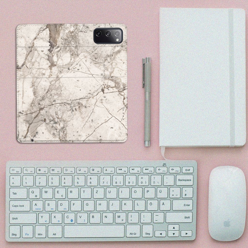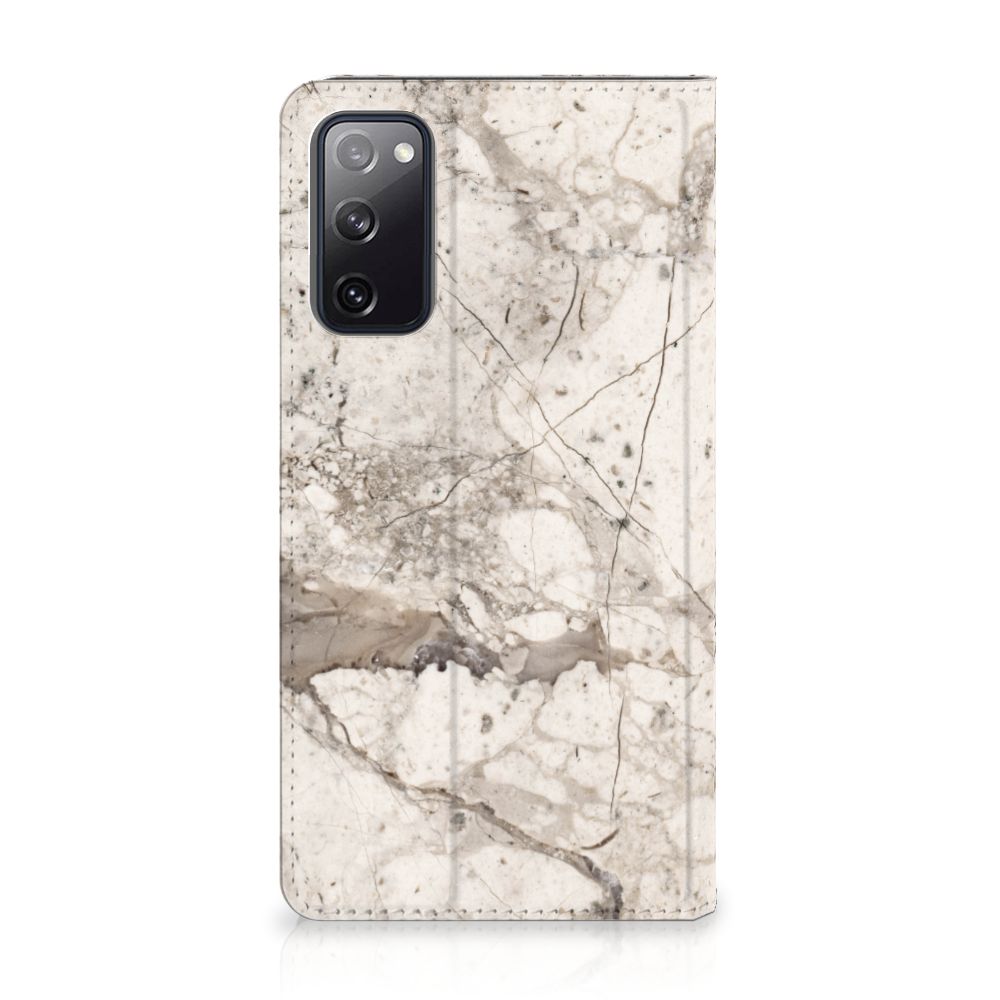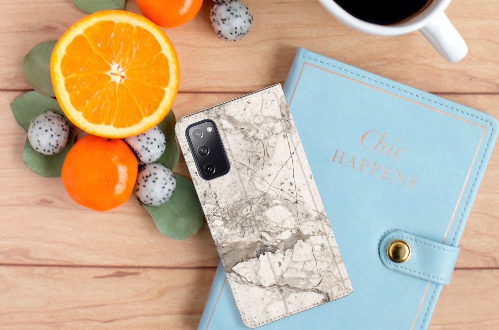 Dit design hoesje met Marmer Beige is voor de artistieke personen onder ons. De Grieken en Romeinen wisten het steen al te waarderen door het als bouw- en bekledingsmateriaal toe te passen. Naast het witte Carrara marmer met haar zacht grijze geaderde belijning zijn de diverse marmersoorten in een ruim kleurenpallet te krijgen. We hebben verschillende kleuren op design hoesjes gezet, zoals in dit geval beige marmer. Dit is een Samsung Galaxy S20 FE Standcase met marmer in beige kleur. Het marmer wordt bedrukt op alle zijden van een stand case, die beschikt over 1 vakje voor een pasje en toebehoren en een magnetische sluiting aan de binnenkant. Verder heeft de case een houder van TPU. De rijkheid aan kleuren en varianties in afwerking geeft designers de vrijheid om met marmer hele mooie architectonische projecten te realiseren. Wij hebben onze designer ook veel vrijheid gegeven. Het resultaat zie je terug in deze stand case met beige marmer, dat de ideale bescherming voor jouw smartphone biedt.