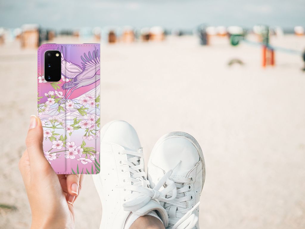 Met deze opvallende en kleurrijke Samsung Galaxy S20 Hoesje maken met Bird Flying design blijft jouw toestel in uitzonderlijke staat. Een ooievaar fleurt al sinds mensenheugenis dorpen en steden op en doet dit ook met jouw stand case. Het design hoesje met deze reigerachtige vogel in roze en paarse kleuren is een zeer goede bescherming voor je telefoon. Het spetterende stand hoesje met opvallende ooievaar beschermt jouw telefoon aan alle zijden en beschikt over een opbergvakje voor een pasje of briefgeld. De roze met paarse case sluit perfect af met de magneet aan de binnenzijde. De houder aan de binnenzijde van het schitterende stand hoesje is van TPU. Dit is ook nog eens zeer flexibel materiaal. Het pu leer aan de buitenkant oogt zeer chique. Kijk voor andere dieren op een design hoesje binnen deze fraaie collectie. Ook kun je zelf een hoesje ontwerpen met je favoriete huisdier.