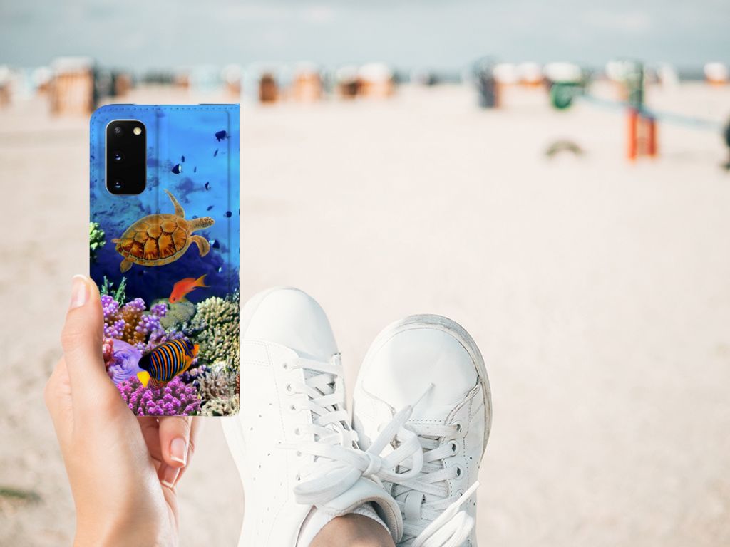 Dit kleurrijke hoesje met tropische Vissen is een ware eyecatcher. Als je aan het duiken bent en je treft een school aan met dit soort opvallende vissen, dan heb je een geweldige ervaring. Maar je hoeft er eigenlijk niet per se het water voor in te duiken. Want wij hebben een schitterende verzameling vissen op dit design hoesje gezet. Met onze zeer geavanceerde printer zetten we de afbeelding van vissen op alle zijden van de Samsung Galaxy S20 Hoesje maken. De case heeft aan de binnenkant een vakje waarin je jouw creditcard of ander pasje kwijt kunt. Ga je een dagje vissen, dan hoef je de portemonnee dus ook niet op zak te hebben. Verder is je telefoon natuurlijk maximaal beschermd met deze stand case met print van tropische vissen. De houder aan de binnenzijde van het design hoesje met vissen print is van TPU.