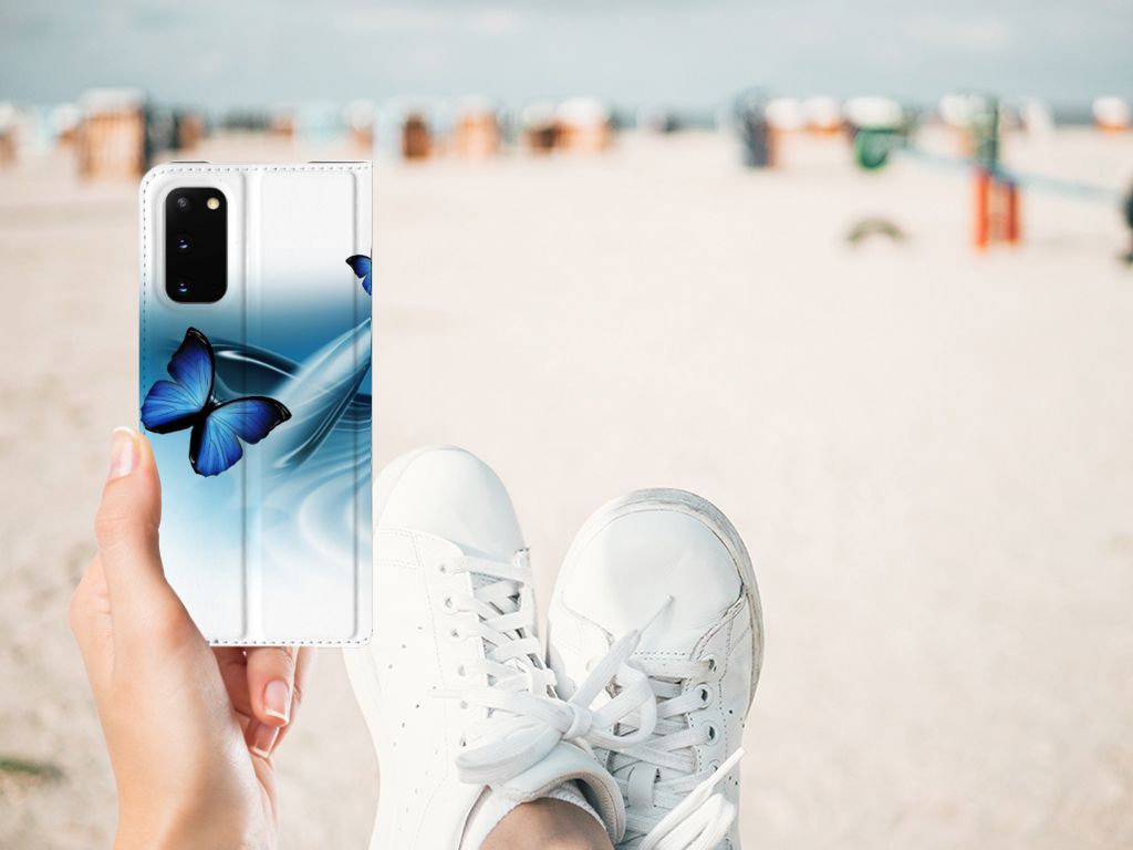 Deze vrolijke Samsung Galaxy S20 Hoesje maken met blauwe vlinders is een ware eyecatcher. De meeste vlinders hebben een onopvallende vleugelkleur, andere soorten hebben juist heldere en felle kleuren. Wij kunnen deze blauwe vlinders op een zeer handige stand case zetten. Deze hoesjes zijn het meest gewild. Met onze geavanceerde printer zetten we de afbeelding van vlinders op alle zijden van het hoesje. De case met vlinders heeft aan de binnenkant een houder waarin je jouw creditcard of ander pasje kwijt kunt. De case heeft bovendien een handige standaard. Verder is je telefoon natuurlijk maximaal beschermd met deze stand case met print van blauwe vlinders. De houder aan de binnenzijde van het design hoesje met vlinder print is van TPU.