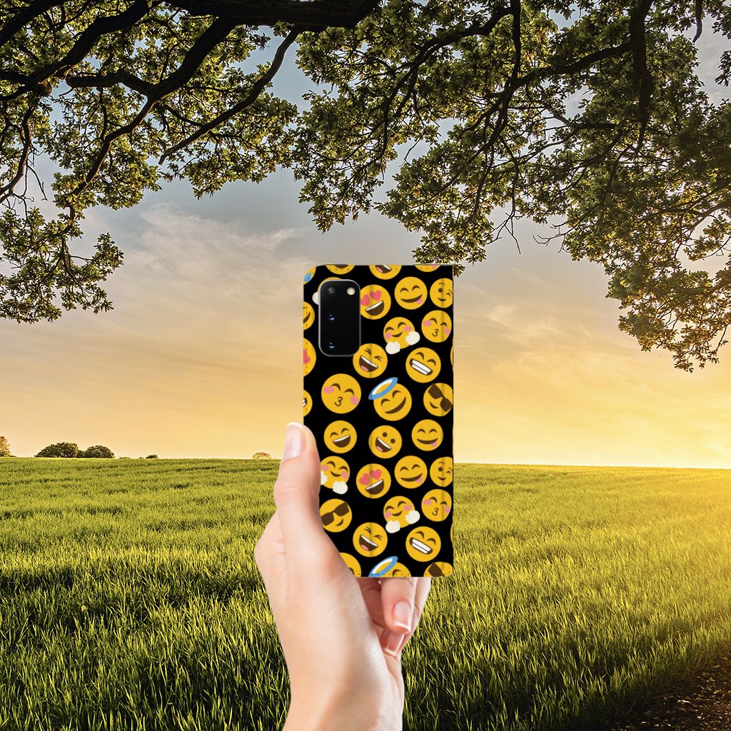 Je gebruikt ze waarschijnlijk dagelijks: emoji’s. Daarom hebben we besloten ze op een design hoesje te zetten. De kleurrijke, vaak gele emoticons maken chatberichten net wat spontaner. Dat hebben we allemaal te danken aan Japan, waar de emoji’s die we zo goed kennen vandaan komen. Ondertussen zijn er meer dan 1800! Deze passen natuurlijk niet allemaal op een Samsung Galaxy S20 Hoesje met Magneet, maar we hebben de meeste gebruikte exemplaren erop gezet. Deze stand case is voorzien van een houder voor een pasje. Super handig. De telefoon zelf zit in een houder van TPU, dat zeer flexibel is. We gebruiken emoji’s vaak om complete woorden te vervangen. Dit smartphone hoesje zegt dan ook meer dan duizend woorden kunnen. De stand case heeft een magnetische sluiting aan de binnenzijde en wordt aan alle kanten bedrukt met emoji’s. Tevens is er een standaard.