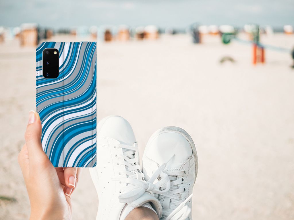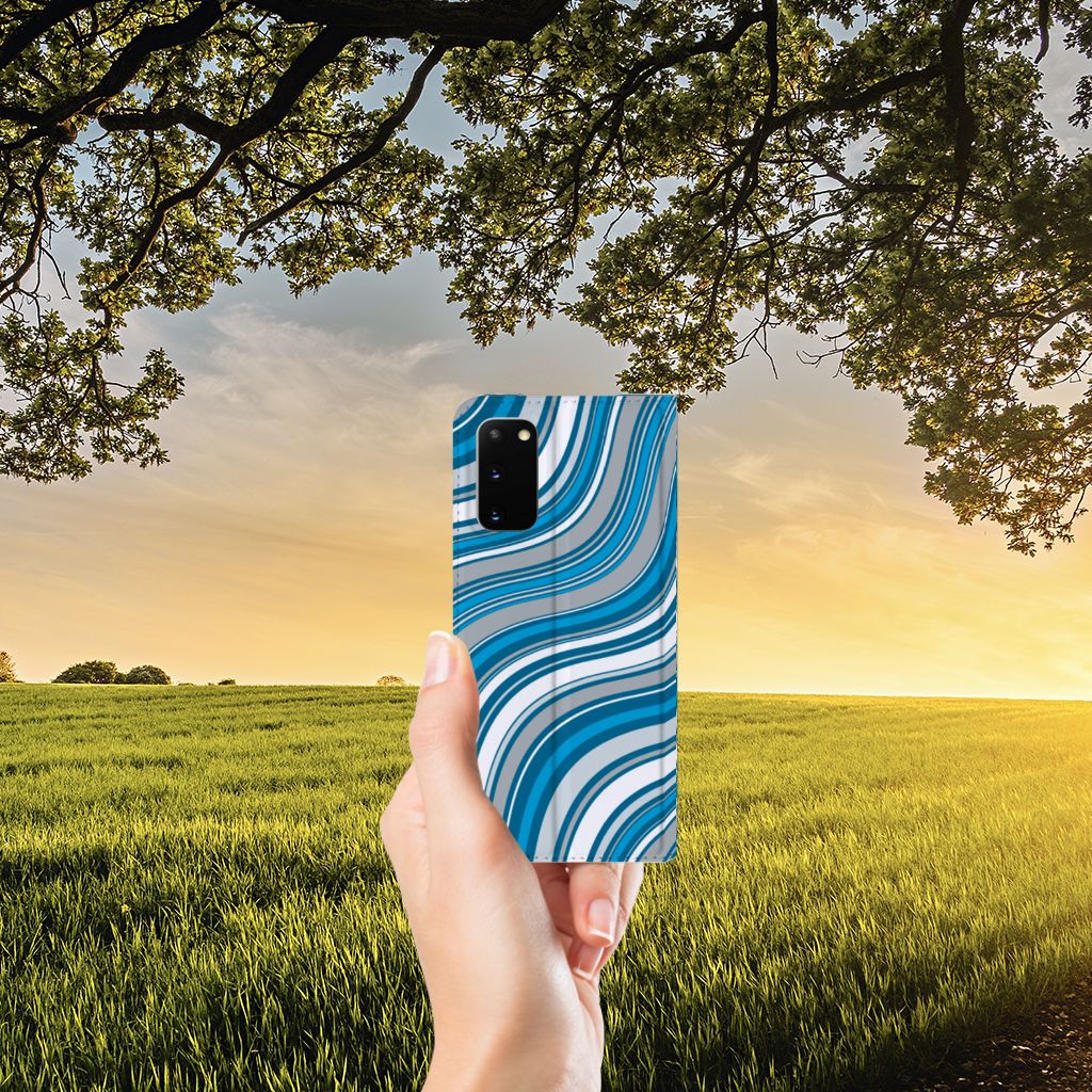 Zeer cool, dit hoesje met vooral blauwe kleuren, die in een golvende beweging jouw telefoon van een mooie uitstraling voorzien. Tijdens een zonnige vakantie aan zee is jouw smartphone perfect beschermd met dit telefoonhoesje. Het design Waves Blue van dit smartphone hoesje doet lichtjes denken aan een lolly, waarmee je een klein kind zeer blij maakt. Jouw Samsung Galaxy S20 zal er ook zeer vrolijk uitzien samen met dit design hoesje. De witte en grijze kleuren staan in mooi contrast met het blauw, waardoor de uitstraling van deze accessoire zeer mooi is. Ook voor andere kleuren kun je natuurlijk uitstekend terecht in ons assortiment. Het design staat op een Hoesje met Magneet. Deze case beschermt jouw telefoon aan alle kanten en beschikt over een 1 opbergvakje en een speciale standaard. Het hoesje wordt afgesloten met een magneet aan de binnenzijde. De houder aan de binnenzijde is van TPU.