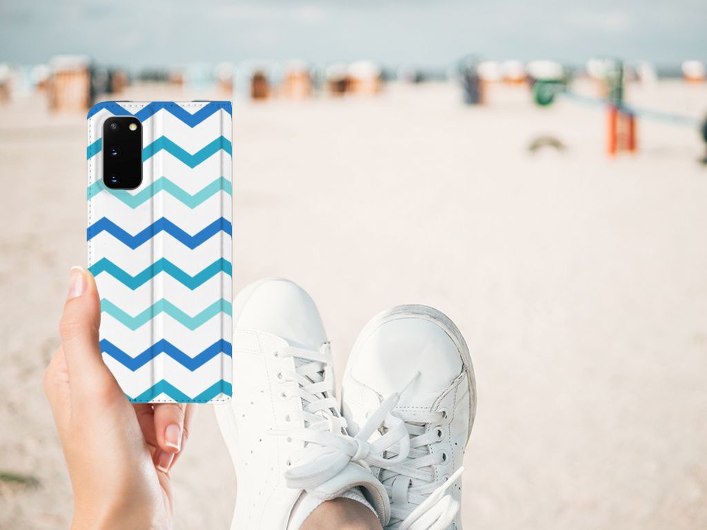 Dit zigzag blauwe design hoesje is speciaal ontworpen voor jou. We hebben bewust verschillende stijlen blauw gebruikt, zodat er voldoende sprake is van variatie. Dit blauwwitte Hoesje met Magneet ziet er super strak uit. Dat kan ook niet anders, als je weet dat onze zeer talentvolle designer er hoogstpersoonlijk voor verantwoordelijk is. Hij schudt wekelijks nieuwe designs uit zijn mouw en dit zigzag blauwe hoesje is een van zijn fraaiste creaties. Een heel dik design hoesje, al zeggen we het zelf. Valt dit blauwwitte design hoesje goed bij jou? Bestel het dan vandaag nog en je hebt het morgen in huis. Het design staat op een stand case. Deze case beschermt jouw Samsung Galaxy S20 aan alle kanten en beschikt over een 1 opbergvakje en een speciale standaard. Het hoesje wordt afgesloten met een magneet aan de binnenzijde. De houder aan de binnenzijde is van TPU. Alle zijden van de stand case worden bedrukt.