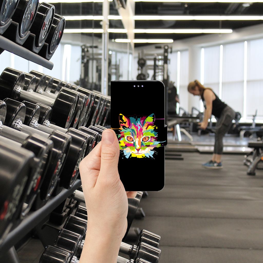 Als jij van katten houdt en op zoek bent naar een uniek hoesje, dan is dit het hoesje wat je wilt hebben. Op de voorkant van dit Leuk Hoesje vind je namelijk een mooie afbeelding van een kat in alle kleuren van de regenboog op een zwarte klassieke achtergrond. Naast dat het een mooi hoesje betreft, is het ook nog eens ontzettend handig. Zo kun je in deze bookcase wel twee á drie pasjes en briefgeld kwijt. Hiermee kun je jouw belangrijkste bezittingen op een plek bewaren in het boekhoesje en kun je jouw portemonnee voortaan thuislaten. Een bookcase heeft daarnaast ook nog het voordeel dat jouw telefoon aan alle zijdes wordt beschermd in dit leuke hoesje, dubbel zo handig dus!