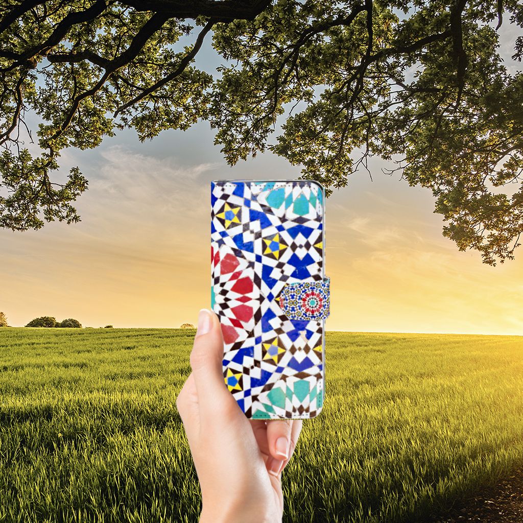 Aan design hoesjes met kunstvormen geen gebrek in onze uitgebreide collectie. Wat dacht je van dit design hoesje met Mozaïek . Dit is een kunstvorm waarbij een grote afbeelding wordt gemaakt uit een groot aantal kleine gekleurde steentjes (tesserae), die in een vloer of wand worden gemetseld. Deze gekleurde steentjes zie je terug op dit boekhoesje met design van mozaïek. Een boekhoesje is zo’n beetje de veiligste case die er bestaat. Een Samsung Galaxy S20 Plus Bookcase met print zorgt voor een volledige bescherming van je smartphone en wordt aan alle zijden bedrukt met mozaïek. Een deel van de foto’s staat ook op het lipje aan de buitenzijde. Verder is de houder aan de binnenzijde van TPU. De Grieken en Romeinen beheersten de kunst al. Op diverse plaatsen in Europa zijn mozaïeken teruggevonden die tot op de dag van vandaag goed bewaard zijn gebleven. Met een hoesje met mozaïek blijft jouw telefoon in tact. Je pasjes en briefgeld kun je in de vakjes aan de binnenzijde stoppen