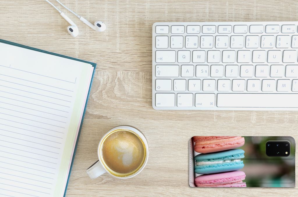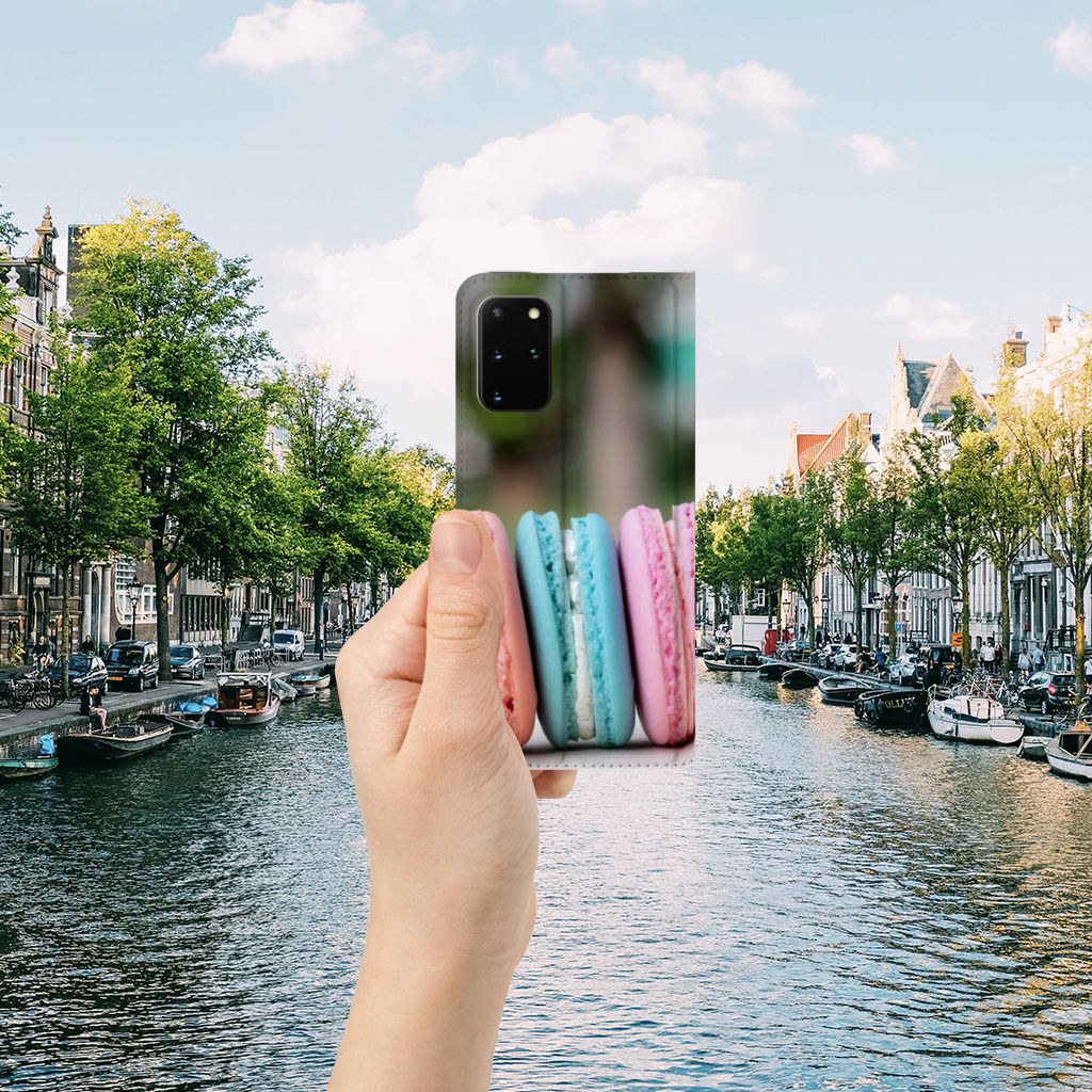 Dit stand hoesje met macarons is een zeer opvallende bescherming voor jouw smartphone. Macarons zijn Franse koekjes: kleine, rond en luchtig. Ze zijn aan elkaar geplakt met een zachte vulling. Ze worden in veel verschillende smaken gemaakt, herkenbaar aan de verschillende kleuren zoals chocolade (donkerbruin), mokka (middenbruin), kersen (rood), pistache (groen), aardbei (roze), framboos (karmijn), citroen (geel) en kokos (roomwit). Deze kleuren kun je natuurlijk ook zien op dit fraaie design hoesje met macarons. Heb je altijd al een Samsung Galaxy S20 Plus Flip Style Cover willen hebben met macarons? Grijp dan nu je kans. Deze case heeft zeer veel goede eigenschappen, zoals 1 opbergvakje en een magnetische sluiting aan de binnenkant. Dit design hoesje met macarons wordt aan alle zijden bedrukt. De houder aan de binnenkant van het hoesje is van TPU. De case heeft ook een handige standaard.
