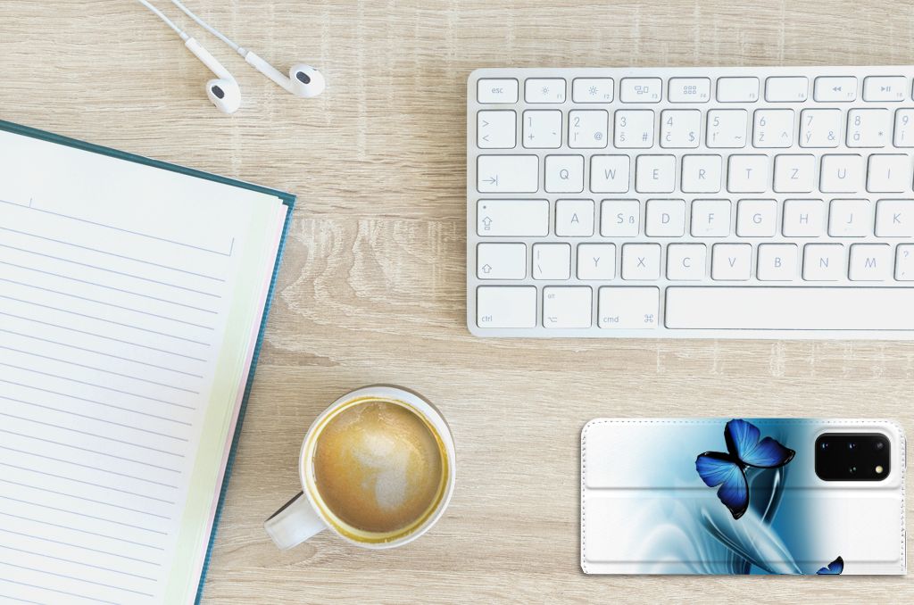 Deze vrolijke Samsung Galaxy S20 Plus Hoesje maken met blauwe vlinders is een ware eyecatcher. De meeste vlinders hebben een onopvallende vleugelkleur, andere soorten hebben juist heldere en felle kleuren. Wij kunnen deze blauwe vlinders op een zeer handige stand case zetten. Deze hoesjes zijn het meest gewild. Met onze geavanceerde printer zetten we de afbeelding van vlinders op alle zijden van het hoesje. De case met vlinders heeft aan de binnenkant een houder waarin je jouw creditcard of ander pasje kwijt kunt. De case heeft bovendien een handige standaard. Verder is je telefoon natuurlijk maximaal beschermd met deze stand case met print van blauwe vlinders. De houder aan de binnenzijde van het design hoesje met vlinder print is van TPU.