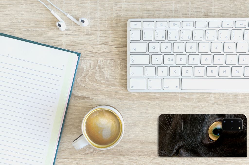 warte katten zijn heel speciaal, vandaar we een exemplaar op een design hoesje hebben gezet. Een zwarte kat schijnt bijvoorbeeld veel beter te kunnen horen dan witte katten. Deze zwarte kat staat op zeer prominente wijze op een stand case. Een Samsung Galaxy S20 Plus Hoesje maken met zwarte kat beschermt jouw smartphone aan alle zijden en wordt ook volledig bedrukt. De stand case met zwarte kat ziet er geweldig uit en is voorzien van verschillende uitsparingen en een speciale standaard. Alle zijden van de case zijn bedrukt. Dit design hoesje is van TPU aan de binnenzijde en zeer flexibel. Verder heeft de case een houder voor een pasje.