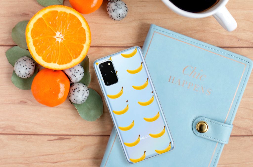 Bananen zitten tjokvol natuurlijke energie-oppeppers. Fructose, glucose, vezels… om er maar eens een paar te noemen. Een banaan is zo’n energiebom, dat wanneer je er twee eet je genoeg energie verzameld hebt om anderhalf uur vol te sporten. Deze vrucht geeft power, daarom misstaan ze ook niet op deze leuke Samsung Galaxy S20 Plus Siliconen Case. Met het aantal bananen dat op dit hoesje staat heb je energie voor een hele maanden of misschien wel een paar maanden. Jouw smartphone blijft zijn kracht behouden als je kiest voor dit design hoesje met bananen. Het grijswit geblokte patroon op de achtergrond geeft nog wat extra’s aan de banaan. Altijd als een print van een banaan op je hoesje willen hebben? Dit is je kans. De bananen staan op een TPU case. Dit hoesje wordt alleen aan de bovenkant bedrukt en is zeer flexibel. Met het aantal bananen dat op dit hoesje staat heb je energie voor een hele maanden of misschien wel een paar maanden. De randen van het hoesje blijven transparant en worden niet bedrukt. Met dit hoesje past jouw telefoon altijd in je broekzak.