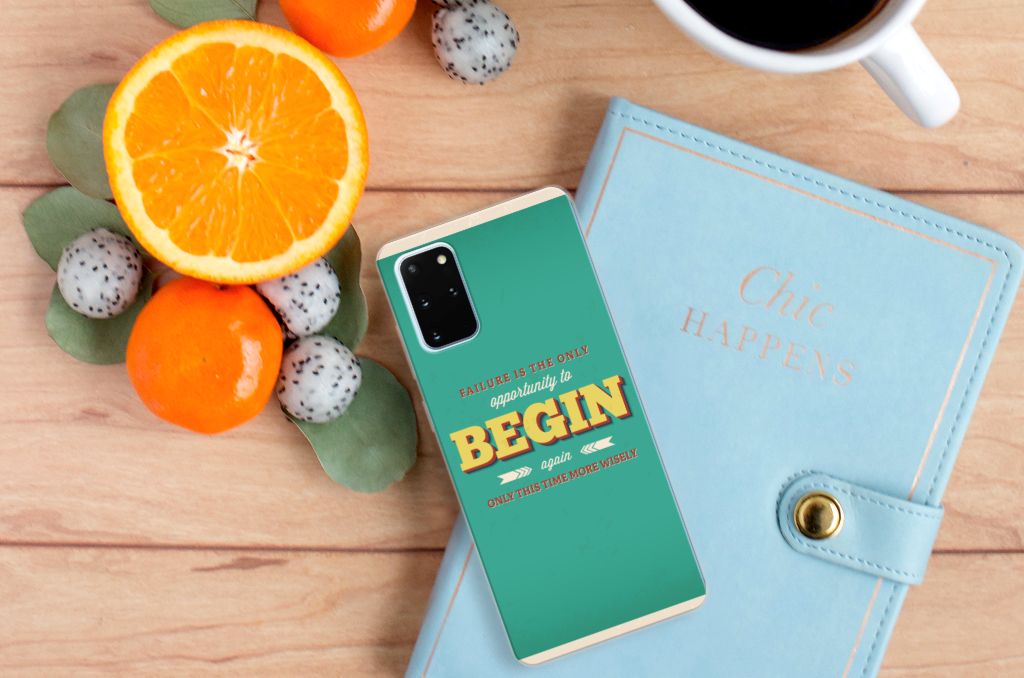 Ben je op zoek naar een uniek telefoonhoesje voor je Samsung Galaxy S20 Plus? Dan ben je bij B2C Telecom aan het juiste adres! Speciaal voor jou hebben we dit prachtige Quote Begin design in onze collectie hoesjes opgenomen. Het design wordt bedrukt op een Siliconen hoesje met naam en is gemaakt van flexibel rubber. Het design wordt alleen aan de bovenkant van het hoesje bedrukt en de randen blijven transparant. Aan de zijkanten zijn uitsparingen gemaakt waardoor je met gemak alle knoppen en poorten kunt bedienen. Wij adviseren om dit hoesje in combinatie met een screenprotector te gebruiken voor een langere levensduur van je telefoon. Wil je dit design hoesje nog iets extra's geven? Voeg dan gratis je naam of een quote toe! Is dit design hoesje toch niet helemaal wat je zocht? Ontwerp dan zelf een hoesje in ons ontwerpprogramma.