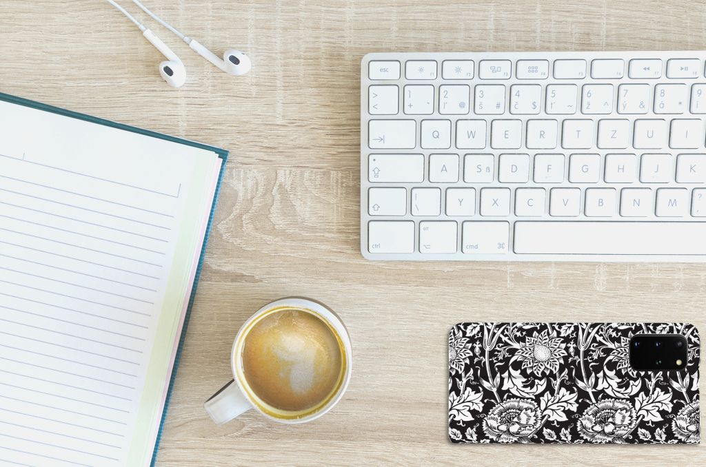 Bloemen raken nooit uit de mode! Een mooie bloemenprint op je telefoonhoesje dus ook niet. Dit ontwerp met mooie, enigszins abstracte bloemen is perfect voor de liefhebber van bloemen die geen felgekleurd hoesje wil. Vanwege de zwarte achtergrond en de witte bloemen heb je toch een opvallend en uniek design in handen. Dit black flowers-ontwerp staat op een Smart Cover voor je Samsung Galaxy S20 Plus. Dit populaire smartphonehoesje met het beton-design heeft één vakje voor een pasje of briefgeld en is aan alle zijden bedrukt. Met de standcase zet je je telefoon gemakkelijk neer, zodat je je handen vrij hebt als je bijvoorbeeld een video wilt kijken. De binnenkant van de standcase is van grijs PU-leer. Dat is fijn, omdat je daardoor niet snel vlekken ziet op je hoesje.