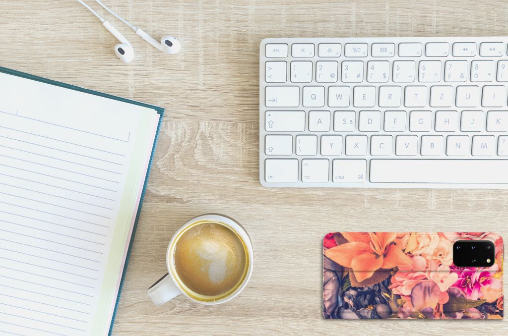 Dit Bosje Bloemen doet een mens en zijn smartphone goed. De oranje, paarse en roze bloemen op deze Samsung Galaxy S20 Plus Smart Cover geven jouw smartphone een zeer sierlijke uitstraling. Je wordt er ook meteen vrolijker van als je aan het appen, mailen of aan het bellen bent. Valt dan je telefoon op de grond, dan zal er dankzij de stand case met oranje, paarse en roze bloemen geen schade ontstaan. Onze stand cases met oranje, paarse en roze bloemen bieden de allerbeste bescherming en zijn heel praktisch, wat blijkt uit onder meer het vakje aan de binnenkant en de handige standaard waarmee je de smartphone rechtop op tafel neer kunt zetten. De oranje, paarse en roze bloemen passen goed op alle zijden van de case. Op deze stand case van leer en TPU (houder aan de binnenkant) is het ook mogelijk je eigen ontwerp te zetten. In no time maak je zelf een stand case met daarop foto’s van jouw favoriete bloemen.