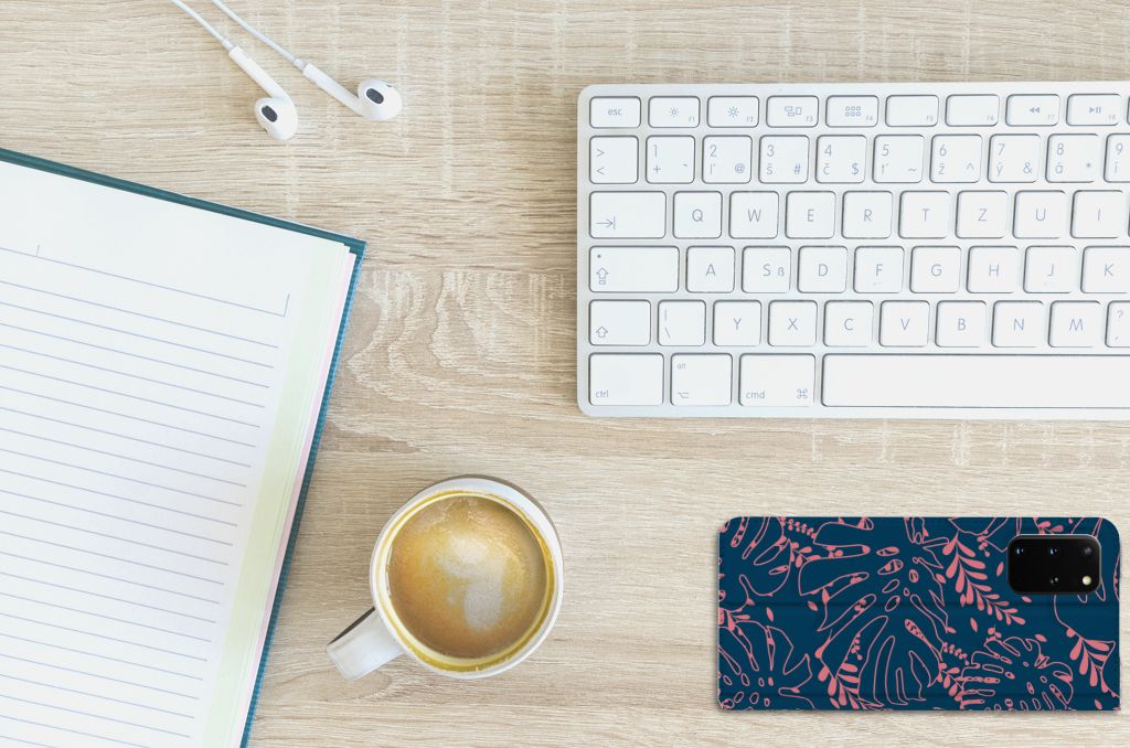Je voelt je verbonden met de natuur als je kiest voor deze Samsung Galaxy S20 Plus Smart Cover met print van roze bladeren op een blauwe achtergrond. De print bestaat uit verschillende roze bladeren en dit zorgt voor een fraai decoratief geheel. Met dit patroon van roze bladeren op een blauwe achtergrond creëer je een opvallende uitstraling voor jouw smartphone. Jij doet er verstandig aan om je telefoon te beschermen met dit design hoesje met roze bladeren op een blauwe achtergrond, die staan op een stand case. Dit hoesje kenmerkt zich onder meer door het handige vakje aan de binnenzijde en de magnetische sluiting aan de binnenzijde. Voel jij jezelf happy bij een beeld van roze bladeren op een blauwe achtergrond, dan is deze stand case met print een uitstekende optie. Het beschermt jouw telefoon aan alle zijden. Het TPU aan de binnenzijde klemt zich perfect om jouw smartphone.