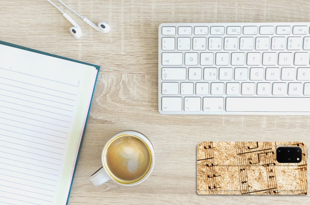 Ben je muzikant, dan is dit design hoesje met Bladmuziek wellicht echt iets voor jou. Met de intrede van nieuwe media wordt de rol van papieren bladmuziek teruggedrongen. Steeds vaker treft men 'bladmuziek' op een beeldschermapparaat, zoals een tablet-pc, e-reader of iPad aan. Gelukkig maar, want als er geen nieuwe media zouden zijn, hadden wij ook nooit onze Phone Case Designer kunnen ontwerpen. Met deze unieke ontwerpmodule kun je jouw favoriete band of artiest op je smartphone hoesje zetten, maar je kunt ook gaan voor dit prachtige design hoesje met print van bladmuziek. Het design staat op een Samsung Galaxy S20 Plus Stand Case. Deze case beschermt jouw telefoon aan alle kanten en beschikt over een 1 opbergvakje en een speciale standaard. Het hoesje wordt afgesloten met een magneet aan de binnenzijde. De houder aan de binnenzijde is van TPU. Alle zijden van de stand case worden bedrukt.