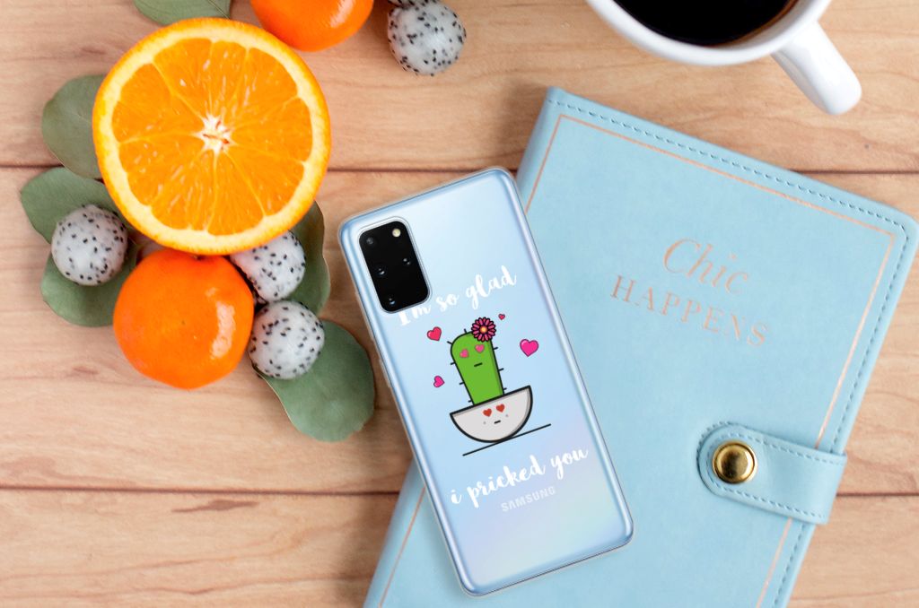 Met de Cactus haal je een vleugje woestijn in je woonkamer. De plant is oer, stoer en verrassend, dankzij opvallende vormen en bloemen. De cactus op dit design hoesje is om verliefd op te worden. Dat straalt deze Telefoonhoesje met Naam, die jouw Samsung Galaxy S20 Plus goed beschermt, echt wel uit. Geen plant zo decoratief en surrealistisch als de cactus. Uit een grijsgroene basis kan een knalroze bol groeien en tussen de stekels kunnen schitterende bloemen verschijnen. Een prachtige manier dus om je telefoon te beschermen, deze schattige TPU case met design Cactus Glad. De hoes is ook nog eens zeer praktisch, mede door het buigzame materiaal en de uitsparingen. Als je telefoon met het TPU hoesje uit je hand valt, stuitert het als het ware meteen weer terug en zal het scherm in tact blijven. De case heeft namelijk opstaande randen aan de voorkant. Alleen de bovenkant van de case wordt bedrukt, de zijkanten zijn doorzichtig.