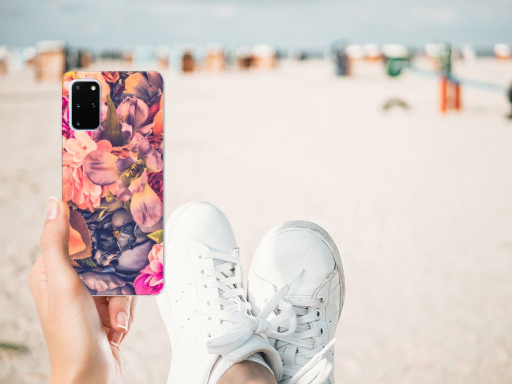 Dit Bosje Bloemen doet een mens en zijn smartphone goed. De oranje, paarse en roze bloemen op deze Samsung Galaxy S20 Plus TPU Case geven jouw smartphone een zeer sierlijke uitstraling. Je wordt er ook meteen vrolijker van als je aan het appen, mailen of aan het bellen bent. Valt dan je telefoon op de grond, dan zal er dankzij de tpu case met oranje, paarse en roze bloemen geen schade ontstaan. Helemaal niet als je er een screenprotector bij hebt gekocht. Onze tpu cases met oranje, paarse en roze bloemen zien er zeer prettig uit en zijn heel praktisch, getuige onder meer de opstaande randen en het flexibele materiaal. Alleen de achterkant van de tpu case wordt bedrukt met oranje, paarse en roze bloemen. Op deze tpu case is het ook mogelijk je eigen ontwerp te zetten. In no time ontwerp je zelf een tpu case met daarop foto’s van jouw favoriete bloemen.