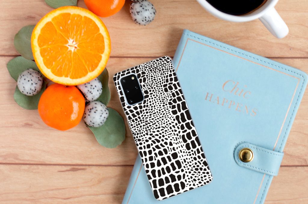 Deze tpu case met zwarte en witte Slangenprint kunnen wij zeer exclusief noemen. Zeker als je er nog een bijzondere tekst van jezelf aan toevoegt, zoals je eigen naam in een sierletter. Jouw tpu case krijgt dan een persoonlijke uitstraling, net nog een beetje specialer dan dit hoesje met zwarte en witte slangenprint. Wat niets afdoet van de exclusiviteit van deze tpu case met zwarte en witte slangenprint. Ben jij toe aan een stoer en opvallend Samsung Galaxy S20 Plus TPU Hoesje? Pak dan dit design met print van slangenhuid als basis. Het tpu hoesje is zeer flexibel en wordt alleen aan de bovenzijde bedrukt. De randen van dit flexibele hoesje blijven doorzichtig. Jij bent ervan verzekerd dat jouw smartphone tegen een stootje kan met dit tpu hoesje met zwarte en witte slangenprint.