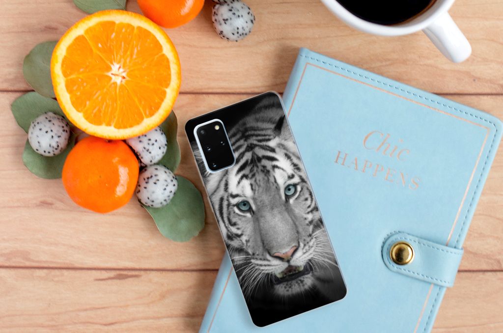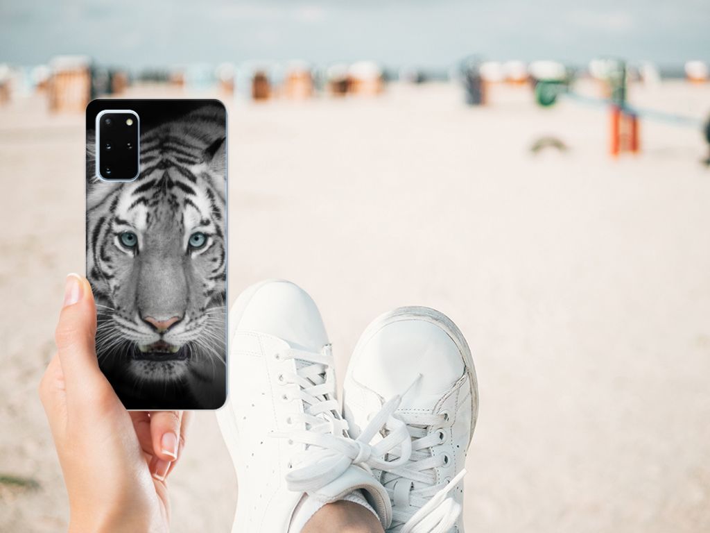 Omdat de Witte Tijger zo bijzonder is, zijn wij bereid deze voor zeer lage kosten op een tpu case te zetten. Dit kunnen we zo goedkoop doen omdat we het drukwerk in eigen beheer doen. Witte tijgers leefden lange tijd in de bossen van India, Bangladesh, Nepal, Bhutan en China en kunnen wel 257 kilo wegen. Dit zwaargewicht kunnen we bedrukken op verschillende soorten hoesjes, zoals deze tpu cases. Deze Samsung Galaxy S20 Plus TPU Hoesje kan exclusief in het bezit van jou komen. Zeker als je er zelf nog unieke teksten en/of beelden aan toevoegt. Het tpu hoesje is zeer flexibel en wordt alleen aan de bovenzijde bedrukt. De randen van dit flexibele hoesje blijven doorzichtig. Tegenwoordig zijn witte tijgers alleen in gevangenschap te bewonderen. Jij zorgt voor een goede bescherming van je smartphone met dit design hoesje met witte tijger.