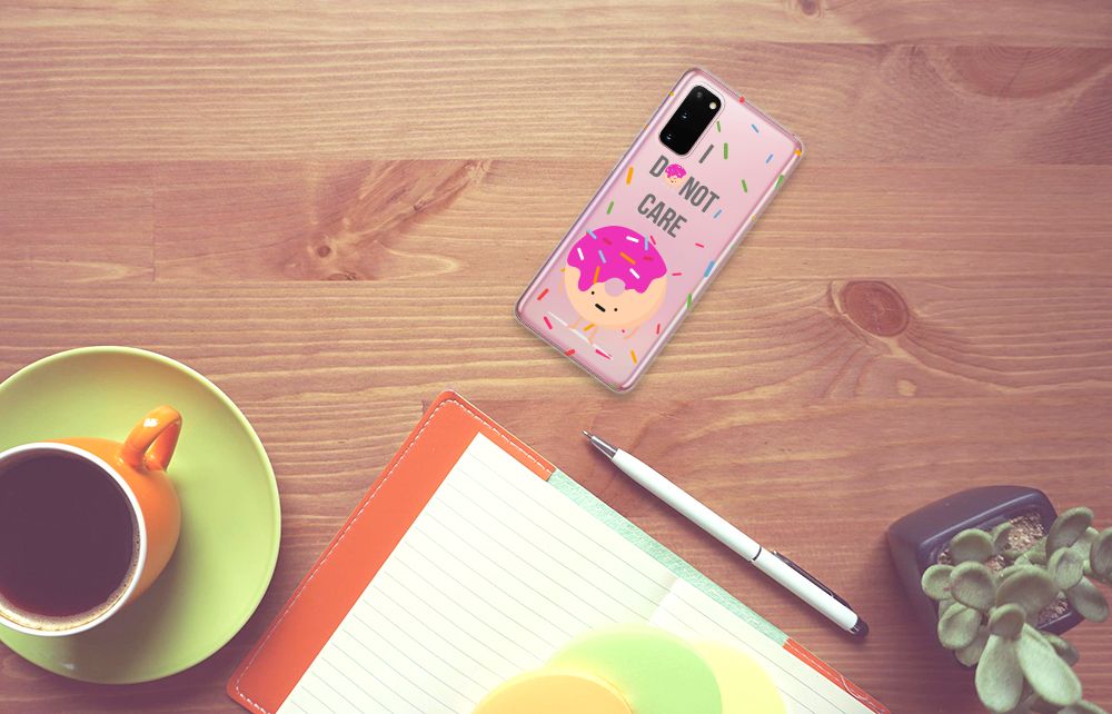 De cartoon met Donut op dit design hoesje geeft jouw smartphone een grappige en vrolijke uitstraling. De Samsung Galaxy S20 Siliconen Case zorgt ervoor dat je je schouders op zult halen als je telefoon een keer op de grond valt. Omdat er geen schade zal optreden kun jij je weg weer heel makkelijk vervolgen. De grappige Donut Care tpu case is nergens anders te krijgen. Het design is namelijk van de hand van onze eigen ontwerper. Daarnaast zal de case jouw smartphone goed beschermen. Een Donut Care tpu case is een zeer flexibel hoesje. Dit komt onder andere door het elastische en onbreekbare materiaal. Verder is de case zeer praktisch. Wat denk je bijvoorbeeld van de opstaande randen aan de voorkant. Verder beschikt de case ook nog eens over alle noodzakelijke uitsparingen. Ook kun je zelf je eigen unieke hoesje ontwerpen, met eigen cartoons, foto’s en teksten. Een Donut Care tpu case wordt alleen aan de bovenkant bedrukt. De randen blijven volledig doorzichtig.