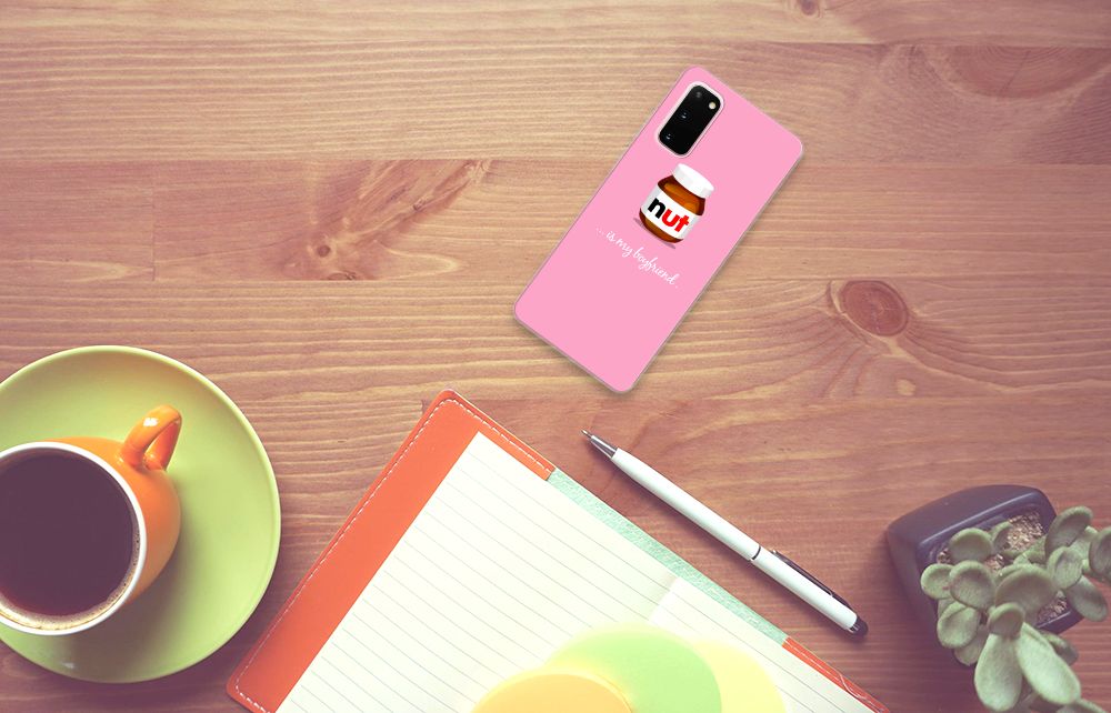 Hou je van chocoladepasta, dan is dit het perfecte Samsung Galaxy S20 Siliconen Case voor jou. De chocoladepasta is enorm populair, dus is het niet zo heel gek dat je een ‘Nut Boyfriend’ tpu case in een roze kleur voorbij ziet komen in ons assortiment design hoesjes met illustraties. Dit is een zeer flexibel hoesje, dat altijd in je broekzak past. Alleen de bovenkant van dit hoesje wordt door ons bedrukt met de pasta, op zeer duurzame manier. Mensen die houden van de bekendste pasta van het moment, kiezen voor dit degelijke tpu hoesje. Er staan geen foto’s op de zijkanten van een tpu case. Wel kun je zelf een eigen tekst toevoegen.