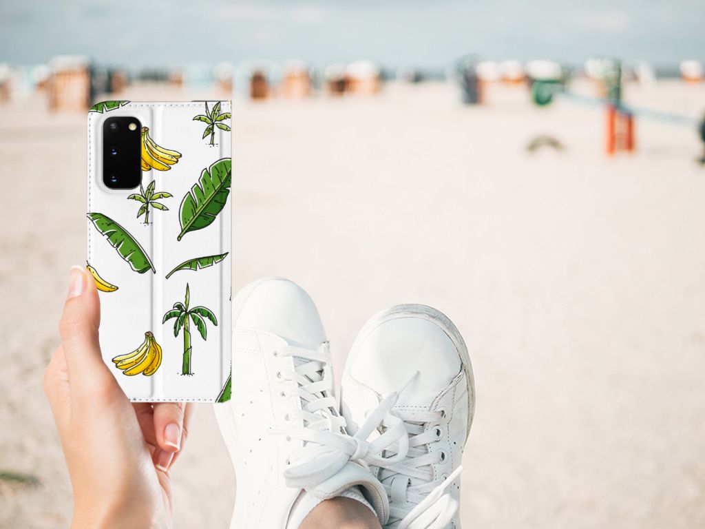 Heb jij al zin om op vakantie te gaan? Dat krijg je hoe dan ook als je één blik werpt op dit vrolijke hoesje voor je Samsung Galaxy S20 met Banana Tree design. Het fleurige tafereel van bananenbomen, bananenbladeren en bananen doet je gedachten afdwalen naar paradijselijke bountystranden met azuurblauwe zee en helderwitte zandpartijen. Kortom: dit hoesje is goed voor je humeur. Naast het luchtige design zijn daar nog meer redenen voor, want dankzij de stevige materialen weet je zeker dat dit Smart Cover je telefoon altijd optimaal beschermt. De solide hoes van PU-leer beschikt ook over een 1 pashouder en een speciale standaard. Het hoesje wordt afgesloten met een magneet aan de binnenzijde. De houder aan de binnenzijde is van TPU. Alle zijden worden bedrukt. Met dit hoesje breng je jezelf in zomerse sferen en gun je jezelf een krasvrije telefoon.