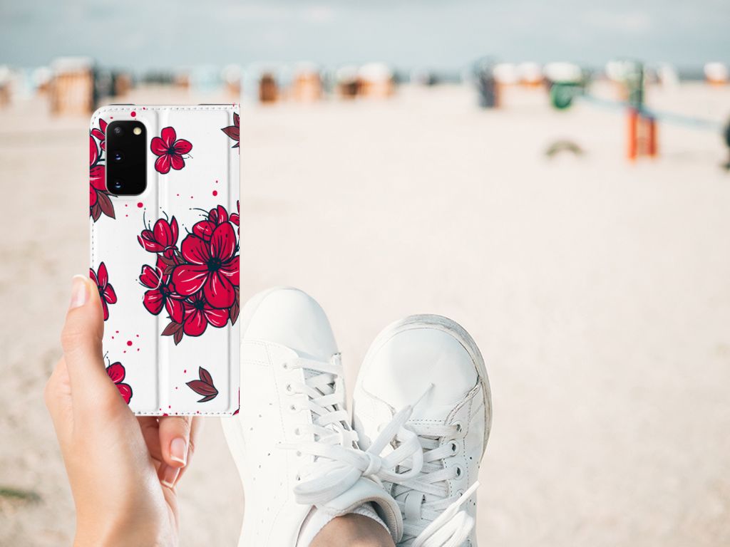 Wie denkt aan Japan, denkt al gauw aan die prachtige kersenbomen die in het begin van de lente in bloei staan en het land hullen in een prachtige zee van bloesem. Wie elke dag wil genieten van deze mooie kersenbloesem, kan natuurlijk ook kiezen voor dit mooie telefoonhoesje! Dankzij de witte achtergrond knallen de rode bloemetjes er mooi uit. Dit blossom red-design staat op een Smart Cover voor de Samsung Galaxy S20. Dit populaire smartphonehoesje met het heeft één vakje voor een pasje of briefgeld en is aan alle zijden bedrukt. Met de standcase zet je je telefoon gemakkelijk neer, zodat je je handen vrij hebt als je bijvoorbeeld een video wilt kijken. De binnenkant van de standcase is van grijs PU-leer. Dat is fijn, omdat je daardoor niet snel vlekken ziet op je hoesje.