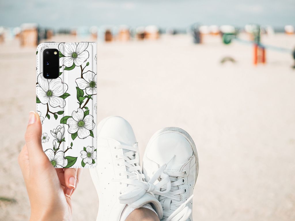 Ben je op zoek naar een uniek telefoonhoesje voor je Samsung Galaxy S20? Dan ben je bij B2C Telecom aan het juiste adres! Speciaal voor jou hebben we dit prachtige Dogwood Flowers design in onze collectie hoesjes opgenomen. Het design wordt bedrukt op een Smart Cover en heeft een vakje aan de binnenkant voor een pasje. Het fijne aan dit hoesje is dat je het als standaard neer kunt zetten. Hierdoor geniet je nog meer als je een filmpje aan het kijken bent op je telefoon. Het hoesje wordt afgesloten door magneten aan de binnenkant. Wil je dit design hoesje nog iets extra's geven? Voeg dan gratis je naam of een quote toe! Is dit design hoesje toch niet helemaal wat je zocht? Ontwerp dan zelf een hoesje in ons ontwerpprogramma.