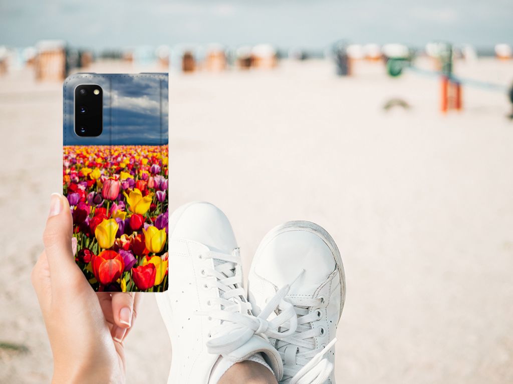 De tulp is een oer-Nederlandse bloem en heeft een lange geschiedenis. Deze Samsung Galaxy S20 Smart Cover met Tulpen ziet er bijzonder kleurrijk uit. Dit fleurige smartphone hoesje geeft een bijzondere bescherming van jouw apparaat. Tulpen zijn ideaal voor een kleurrijk begin van het tuinseizoen. Iedereen wordt er vrolijk van om te zien hoe deze bloemen het voorjaar kleur geven en het begin van de warmere tijd van het jaar aankondigen. Dan kan het toch niet anders of jij wordt heel erg blij van deze stand case met tulpen? Deze populaire stand case heeft ruimte voor een pasje of briefgeld aan de binnenzijde en wordt magnetisch afgesloten. De houder aan de binnenkant is van TPU en de case wordt aan alle zijden bedrukt met tulpen. Je kunt ook zelf een stand case maken met daarop jouw favoriete bloemen.