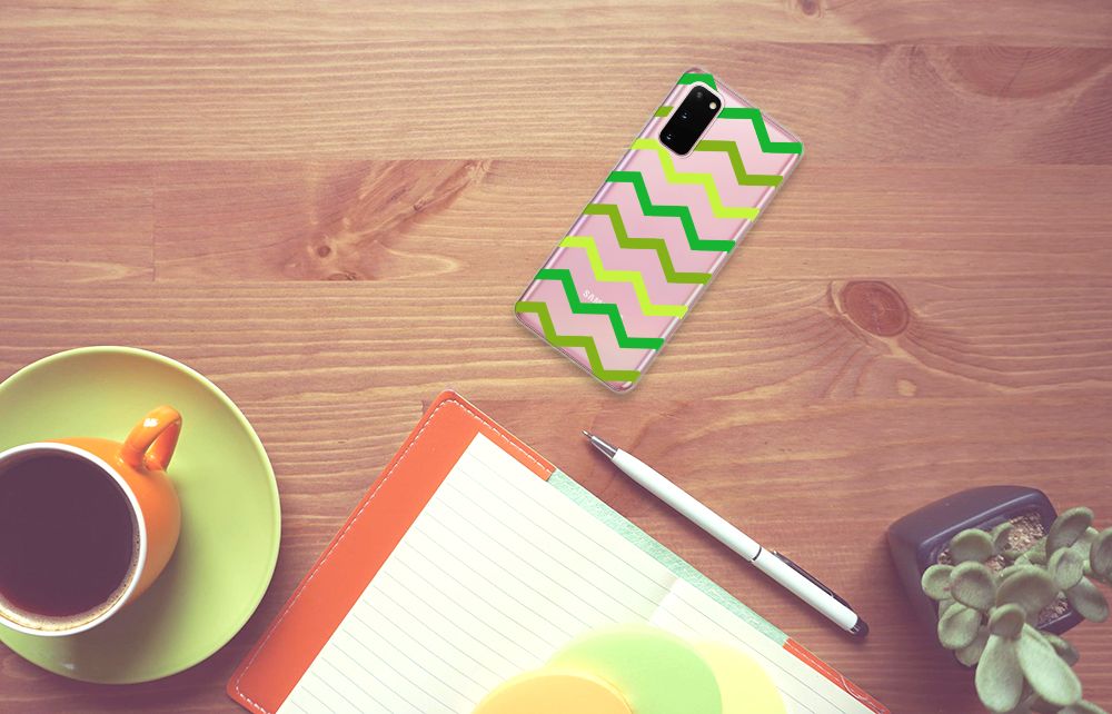 Dit zigzag groene design hoesje is speciaal ontworpen voor jou. We hebben bewust verschillende stijlen groen gebruikt, zodat er voldoende sprake is van variatie. Dit groene hoesje ziet er super strak uit. Dat kan ook niet anders als je weet dat onze designer zijn creativiteit heeft gebruikt. Hij schudt voortdurend nieuwe designs uit zijn mouw en dit zigzag groene hoesje is een van zijn fraaiste creaties. Een heel tof Samsung Galaxy S20 TPU bumper, al zeggen we het zelf. Valt dit Zigzag Groen design hoesje goed bij jou? Bestel het dan vandaag nog en je hebt het morgen in huis. Het design staat op een TPU case. Dit hoesje wordt alleen aan de bovenkant bedrukt en is zeer flexibel. De randen van het hoesje blijven transparant en worden niet bedrukt. Met dit hoesje past jouw telefoon altijd in je broekzak.