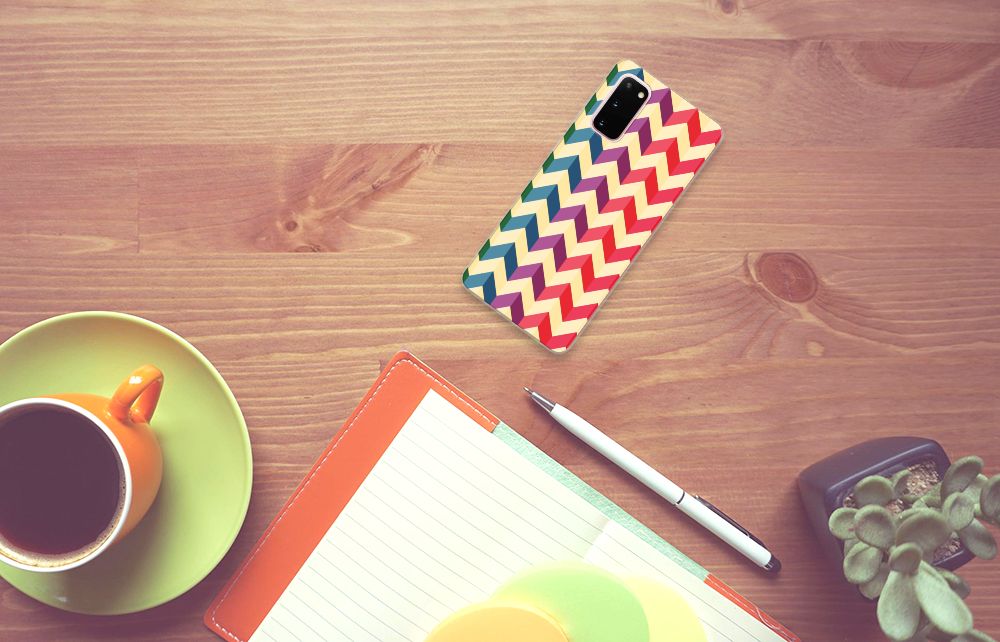 Ben je op zoek naar een uniek telefoonhoesje voor je Samsung Galaxy S20? Dan ben je bij B2C Telecom aan het juiste adres! Speciaal voor jou hebben we dit prachtige Zigzag Color design in onze collectie hoesjes opgenomen. Het design wordt bedrukt op een TPU bumper en is gemaakt van flexibel rubber. Het design wordt alleen aan de bovenkant van het hoesje bedrukt en de randen blijven transparant. Aan de zijkanten zijn uitsparingen gemaakt waardoor je met gemak alle knoppen en poorten kunt bedienen. Wij adviseren om dit hoesje in combinatie met een screenprotector te gebruiken voor een langere levensduur van je telefoon. Wil je dit design hoesje nog iets extra's geven? Voeg dan gratis je naam of een quote toe! Is dit design hoesje toch niet helemaal wat je zocht? Ontwerp dan zelf een hoesje in ons ontwerpprogramma.