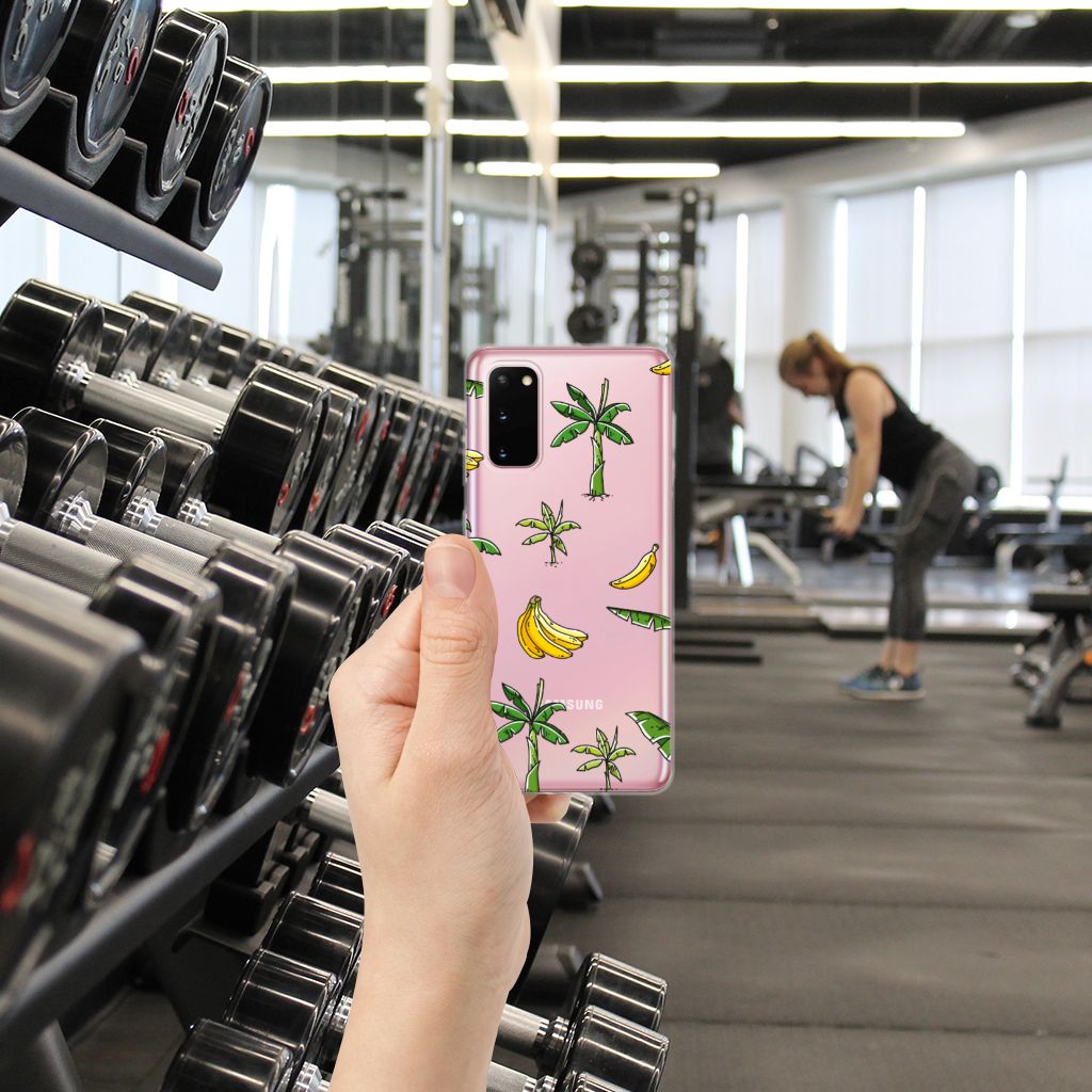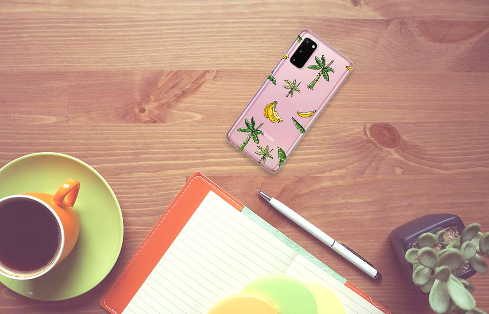 Heb jij al zin om op vakantie te gaan? Dat krijg je hoe dan ook als je één blik werpt op dit vrolijke hoesje voor je Samsung Galaxy S20 met Banana Tree design. Het fleurige tafereel van bananenbomen, bananenbladeren en bananen doet je gedachten afdwalen naar paradijselijke bountystranden met azuurblauwe zee en helderwitte zandpartijen. Kortom: dit hoesje is goed voor je humeur. Naast het luchtige design zijn daar nog meer redenen voor, want dankzij de stevige materialen weet je zeker dat dit TPU Case je telefoon altijd optimaal beschermt Dit hoesje wordt alleen aan de bovenkant bedrukt en is zeer flexibel. De randen van het hoesje blijven transparant. Met dit hoesje breng je jezelf in zomerse sferen en gun je jezelf een krasvrije telefoon.