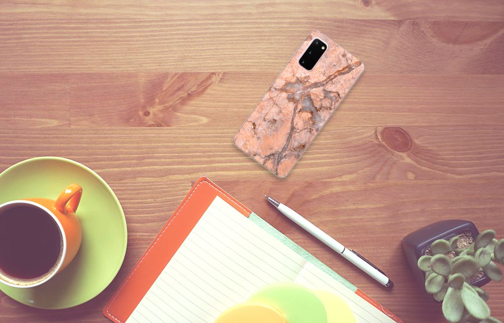 Dit design hoesje met Marmer Oranje is zeer geschikt voor jouw kostbare telefoon. Vanwege zijn prachtige lichtval en vastheid is marmer een zeer gewild bouwmateriaal. Wij kunnen inmiddels concluderen dat dit hoesje met oranje marmer ook zeer gewild is. Beloon jezelf en je telefoon met dit hele mooie Samsung Galaxy S20 TPU Siliconen Hoesje. Naast het oranje marmer zijn er de diverse marmersoorten in een ruim kleurenpallet te krijgen. Deze tpu case met marmer in oranje wordt aan de achterzijde bedrukt. De case beschikt over opstaande randen en is gemaakt van onbreekbaar materiaal. De randen van de case in oranje marmer blijven transparant. Wij hebben onze designer veel vrijheid gegeven met het ontwerpen dit mooie hoesje. Het resultaat zie je terug in deze tpu case met oranje marmer, dat een hele goede bescherming is voor jouw smartphone. Des te mooi dat wij voor variatie hebben gekozen door een hoesje met oranje marmer aan de bieden.