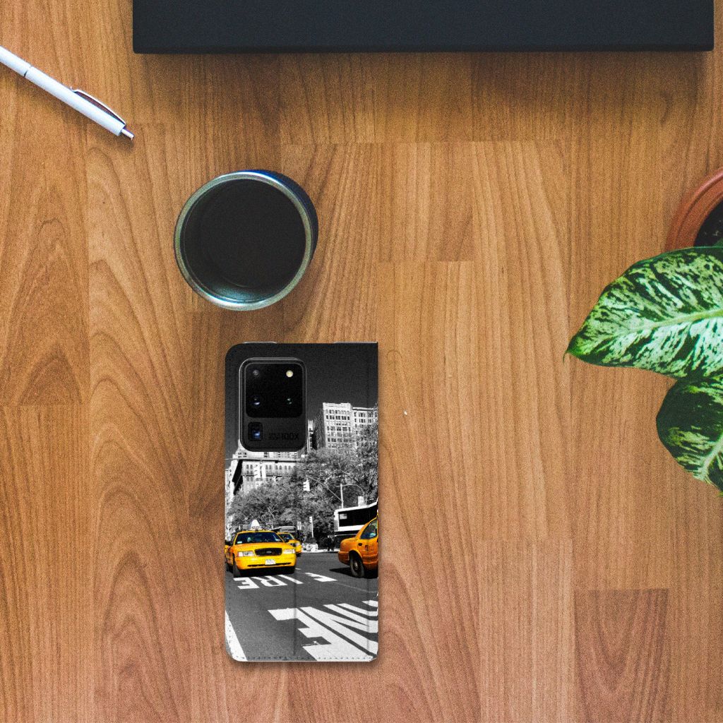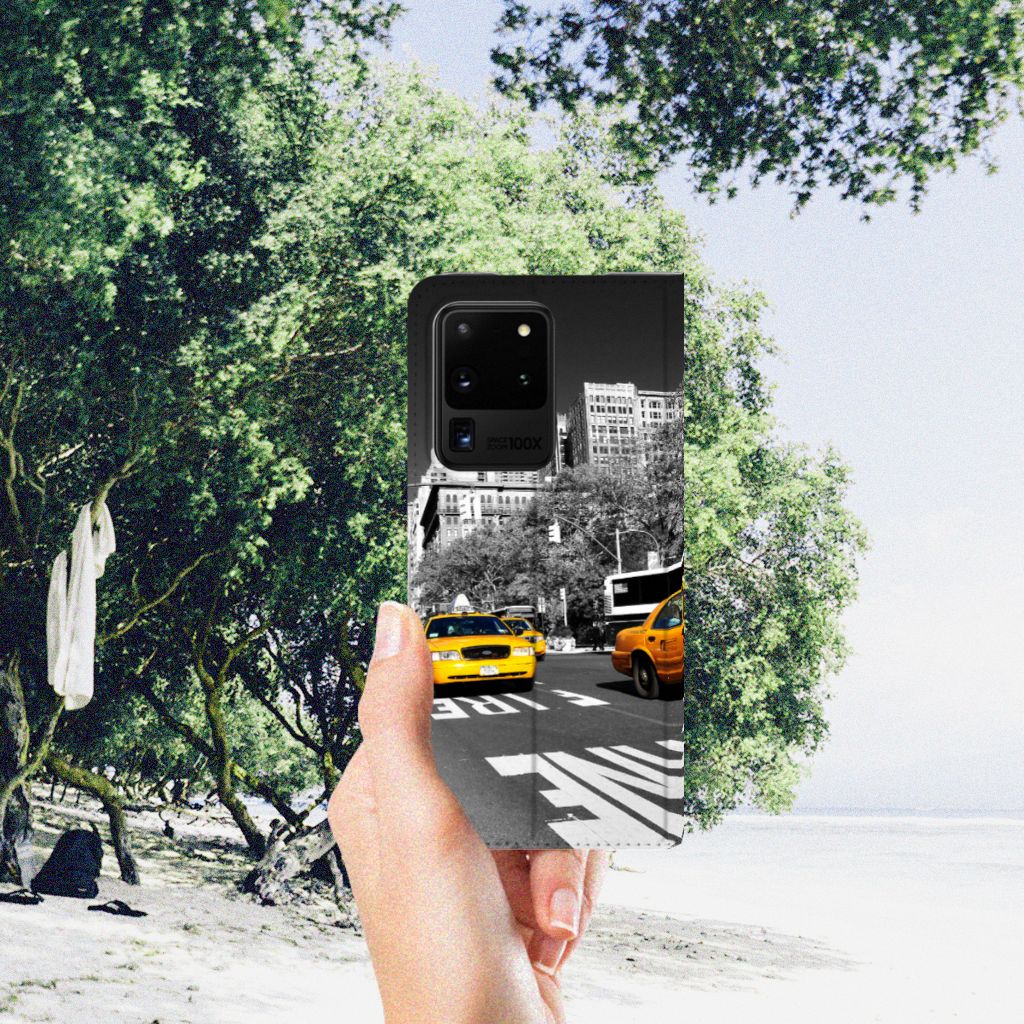 Voor de liefhebbers hebben we een design hoesje met print van New York. Om van plek A naar B te komen, nemen de meeste mensen een taxi. Omdat de taxi symbolisch is voor New York, hebben we deze ook op deze stand case gezet. Een Samsung Galaxy S20 Ultra Book Cover is ook zeer handig. Vanwege onder meer het opbergvakje aan de binnenzijde, maar ook door de magneet aan de binnenzijde. Dit is een magnetische sluiting. Een taxi nemen, is de makkelijkste manier om van de ene plek naar de andere plek in de stad New York te raken. Zorg ervoor, als je deze stad bezoekt, dat je telefoon goed is beschermd met dit stand hoesje. Een stand case wordt aan alle zijden bedrukt en de houder aan de binnenkant is van TPU. Tevens heeft de case een standaard, waarmee filmpjes kijken heel leuk is.